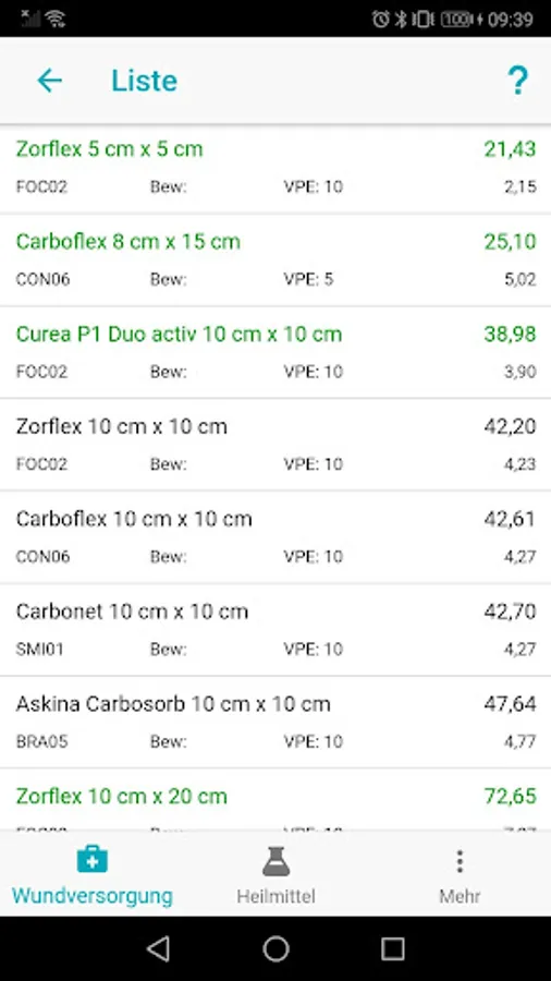 The bandages are displayed in ascending order according to the ranking in the price comparison. The cheapest products are marked in green. If products are marked in red in the result list, there is basically no cost assumption.