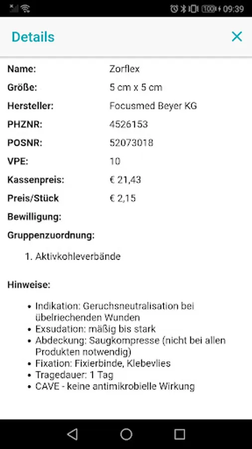 In addition to the area of wound care, the app offers similar functions for the area of medication. The basis is the reimbursement code of the Austrian health insurance carriers.