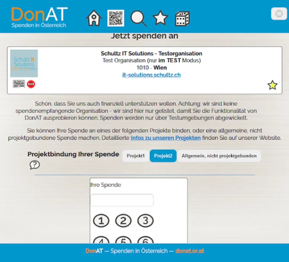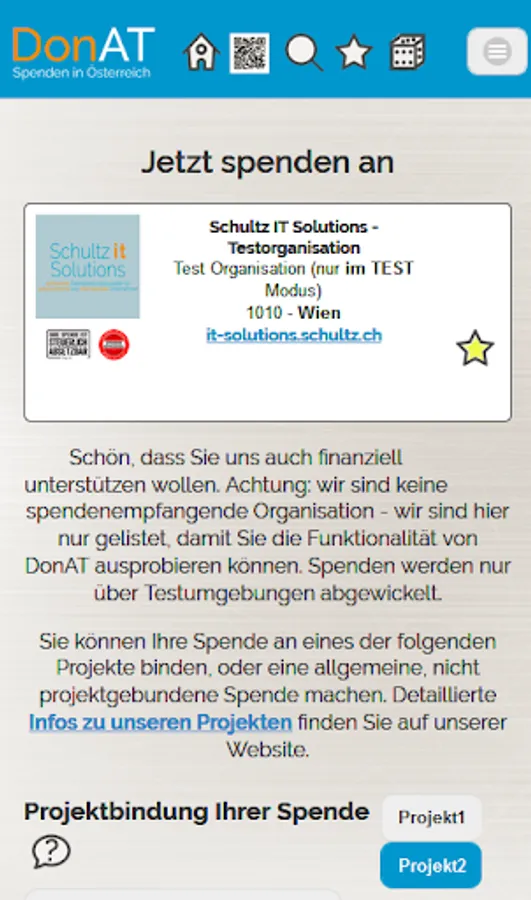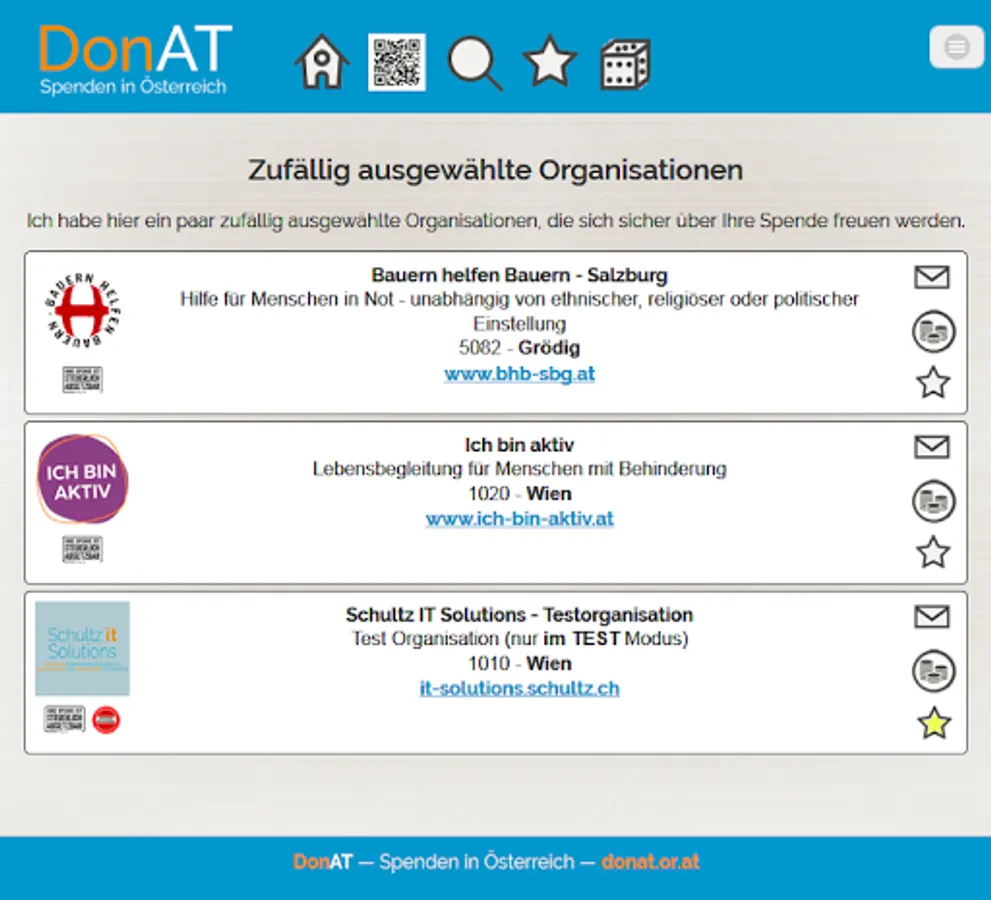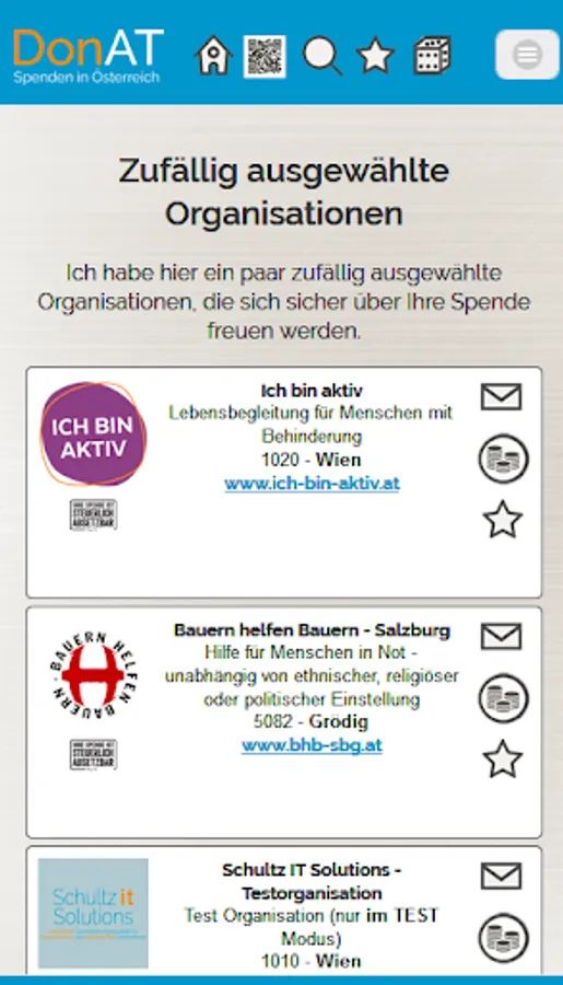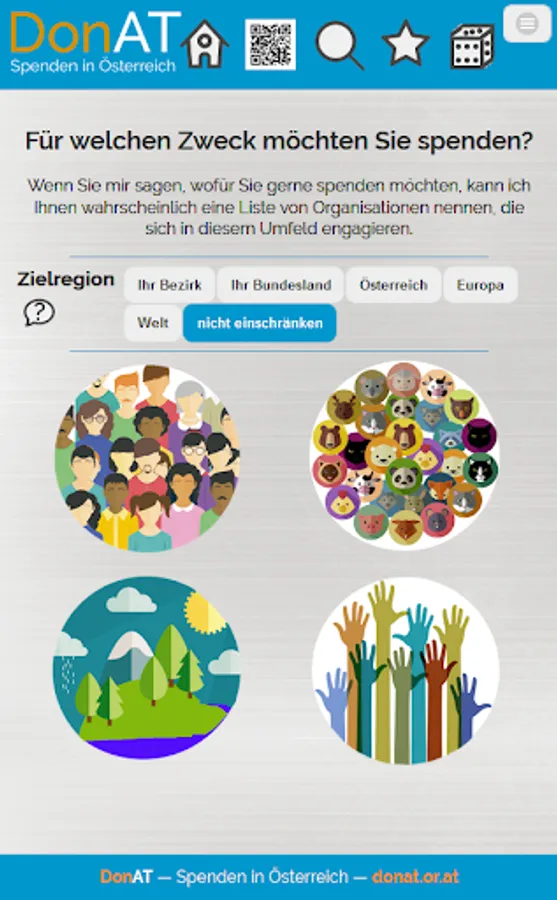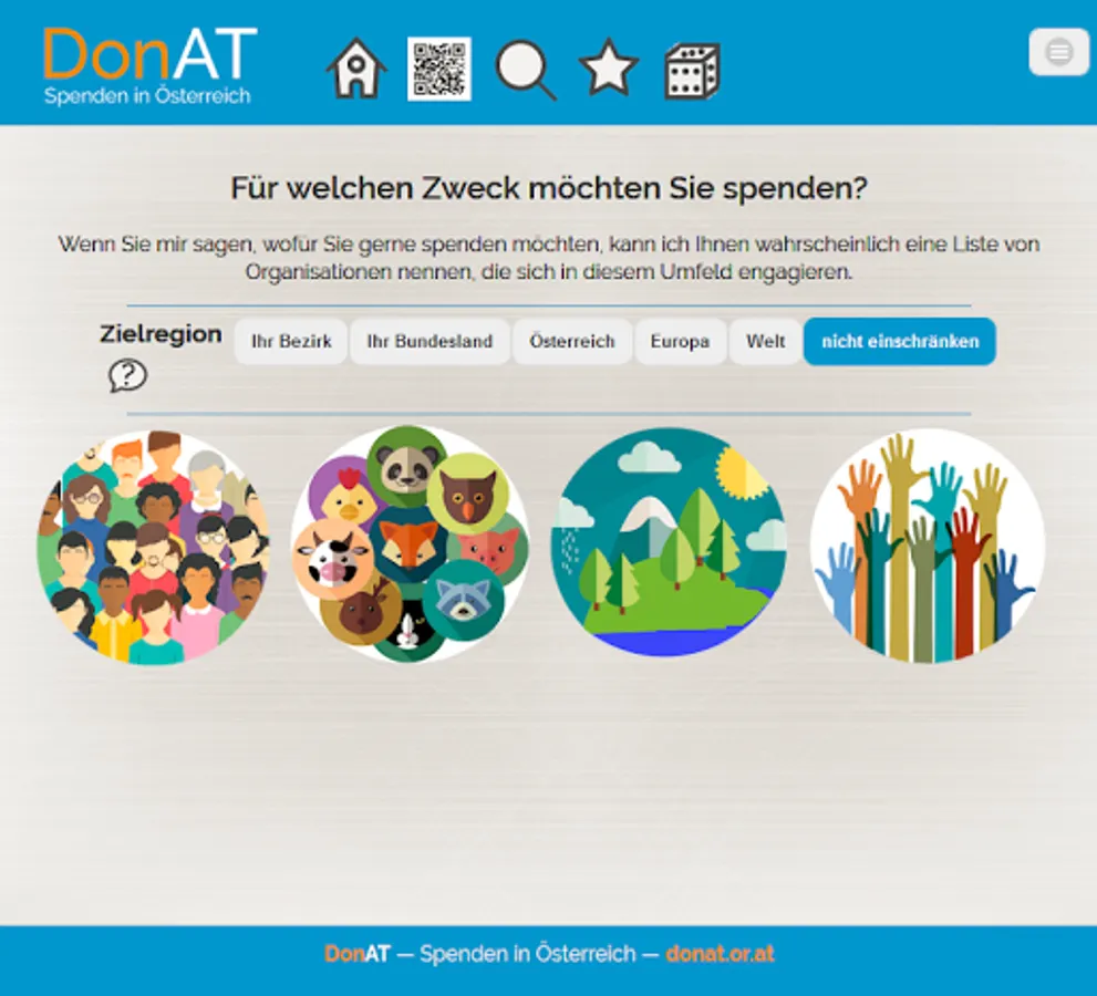 With DonAT you can donate without hindrance to the organizations whose goals you would like to support. Search for your "favorite organization" or list organizations with a specific objective ...