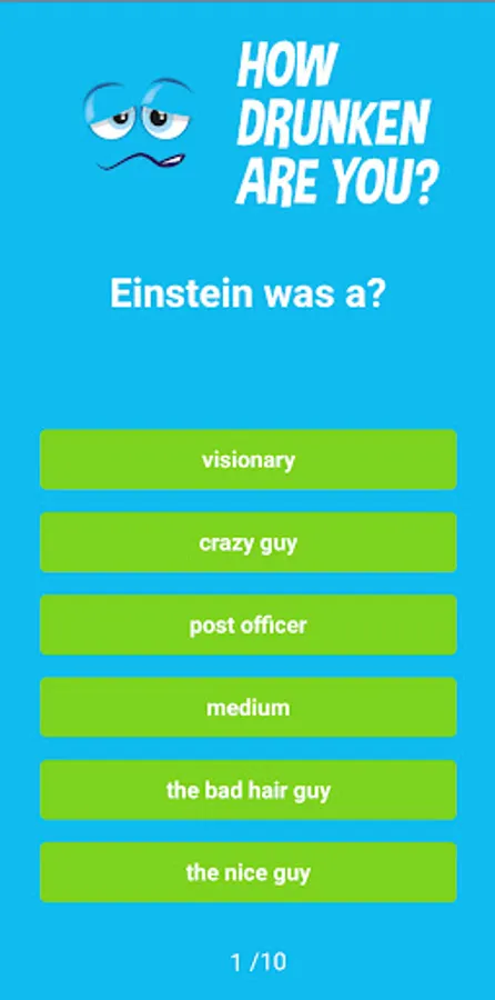 A funny app that asks you 10 mixed up questions. After the 10 questions you get a score and a funny answer. Share your score with others to see who can reach the highest score. start the competition!