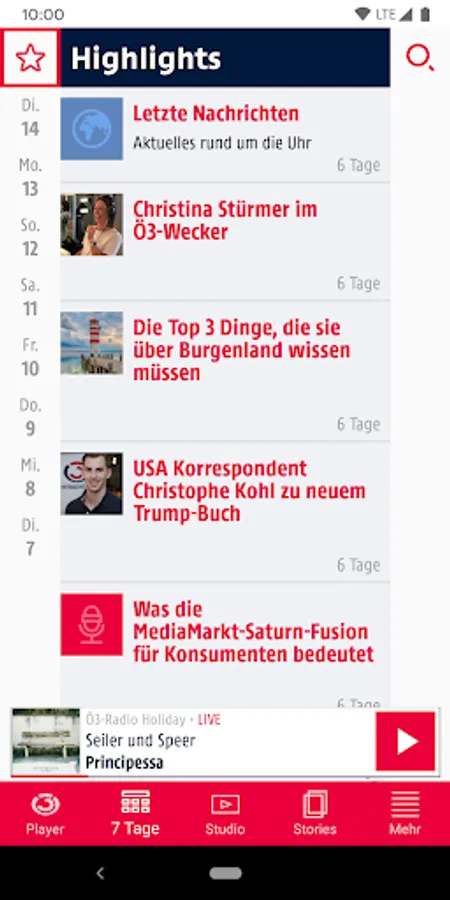 - Under Highlights you will find the best posts of the last 7 days (live guests, comedy, etc.) that we have selected for you. There you will also find the latest news program, the current weather report and the last traffic entry.