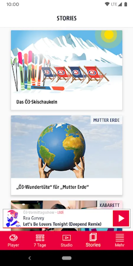 - Under Stories you will find the current articles of the Ö3-Homepage (oe3.ORF.at).