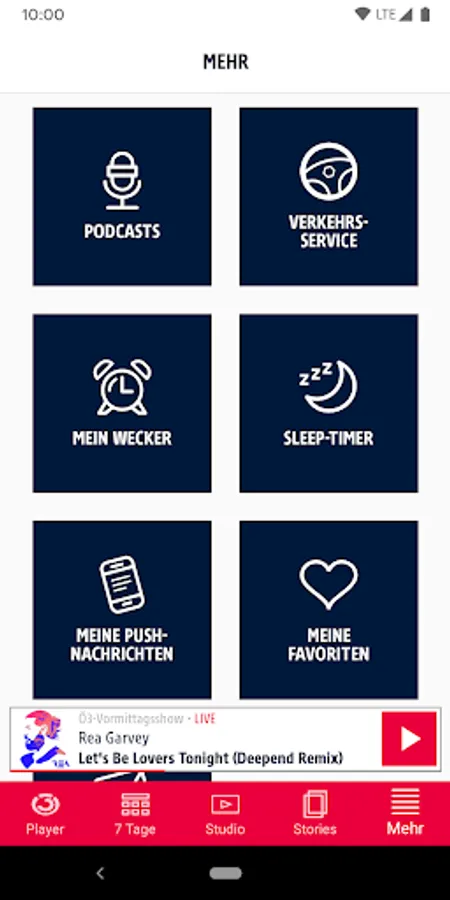 - Podcasts: You can find all podcasts from Ö3, listen to them in the app immediately or load them into another pod catcher (iOS: Apple podcast, Spotify).