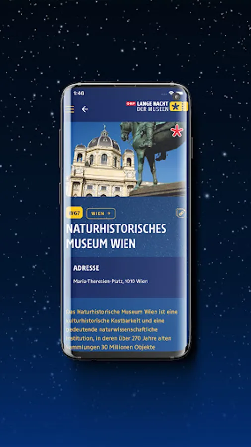 The app is an important guide through the “ORF Long Night of Museums” and offers detailed information and program descriptions for the event.