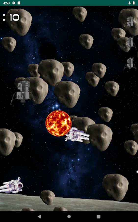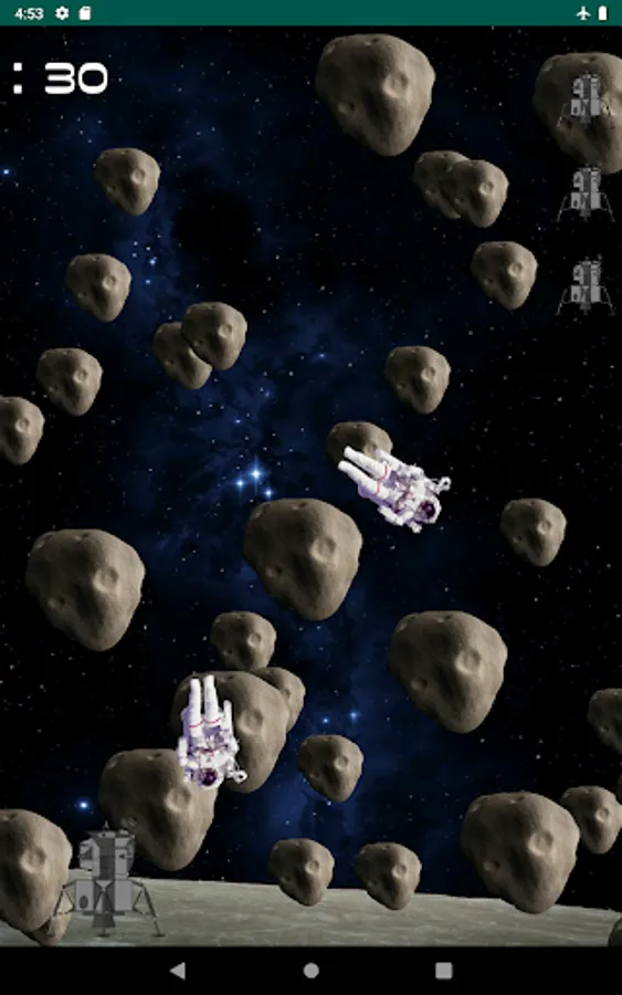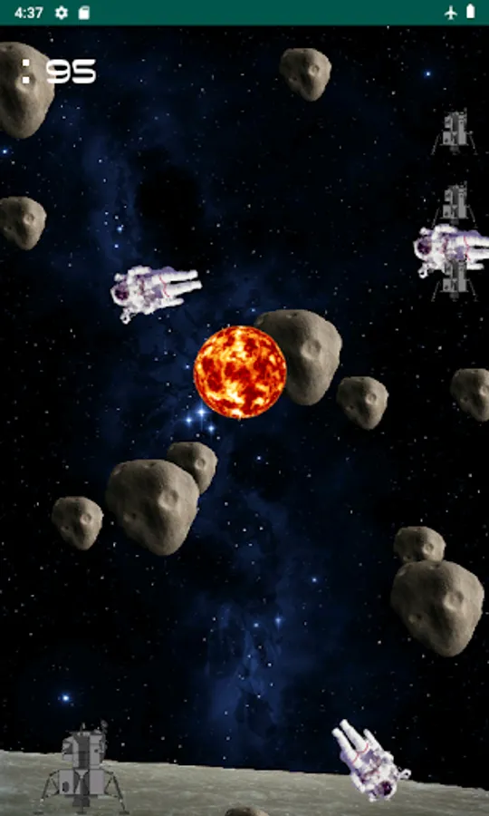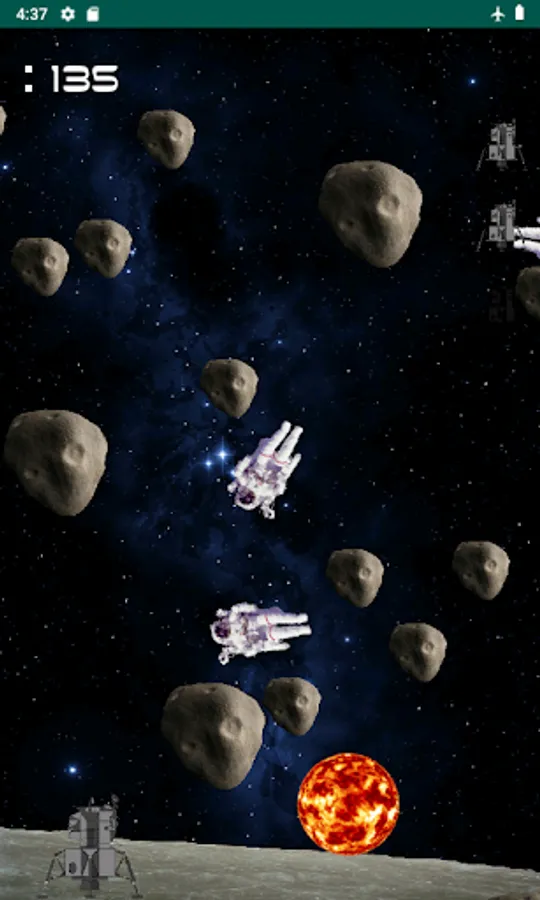 You want to collect the astronauts, do not touch the red star you want the otherwise.
