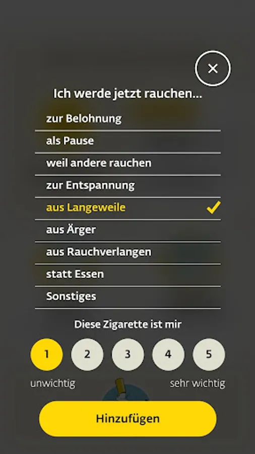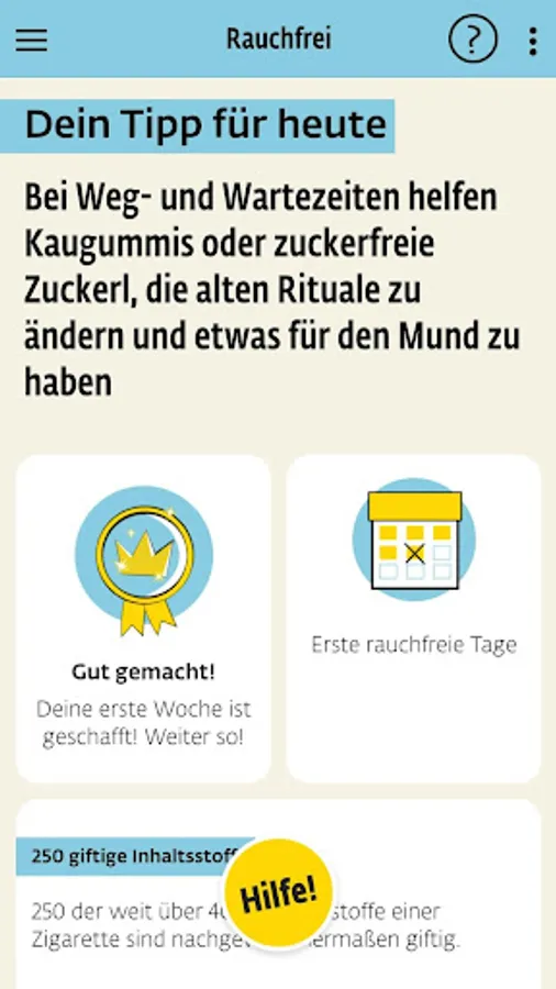 This app supports and accompanies the individual process of becoming smoke-free. It can supplement, not replace, personal advice on stopping smoking and treating tobacco addiction.