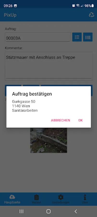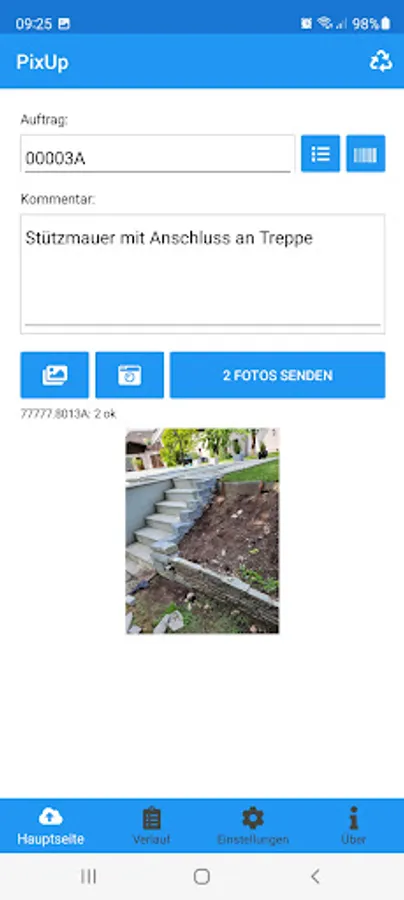 Before that, a plain text name for the entered order / identification number is displayed in order to confirm the correct assignment of the pictures to the document folder.