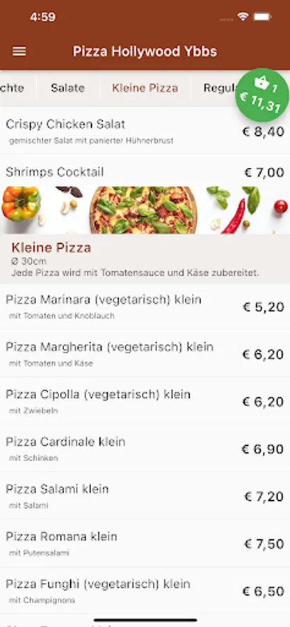 Pizza Hollywood Ybbs now also delivers to your home. Order Italian pizza, pasta, salads, drinks and desserts conveniently and easily online. Now simply order food online via the web or via the app. Choose your favorite food, pay easily & securely and food will be delivered! Simply order food and have it delivered for free! Pay in cash or online. Great offers. Excellent service. Fast delivery.