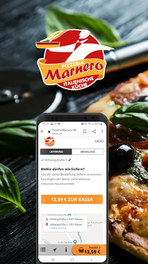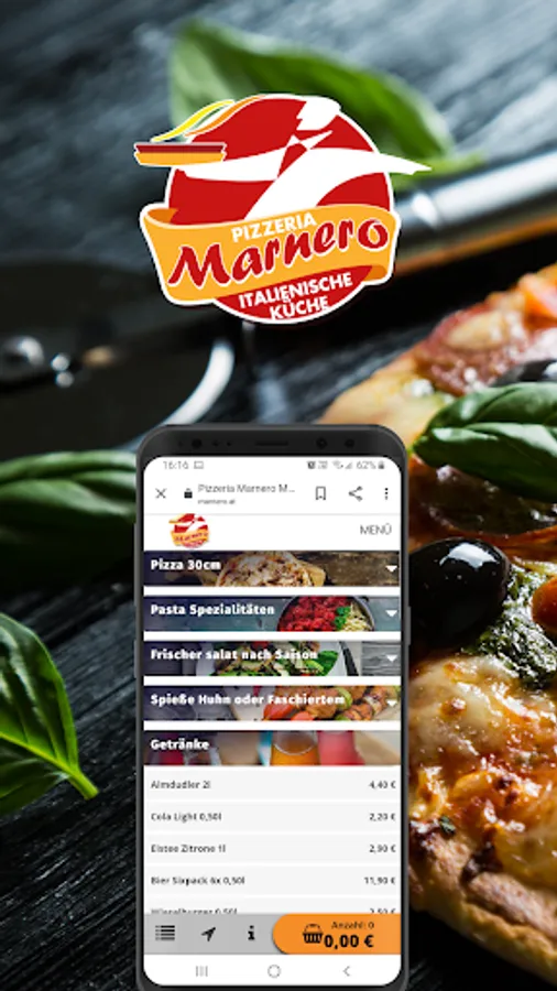Pizzeria Marnero now delivers to your home. Order your favorite pizza, kebab, salads or drinks conveniently and easily online via our app or our homepage. Choose your favorite food, pay safely and conveniently online and we will deliver your food directly to your home.