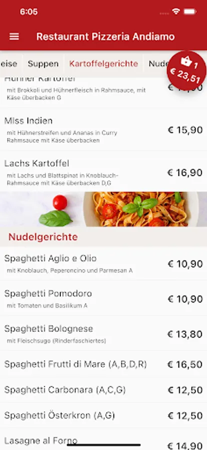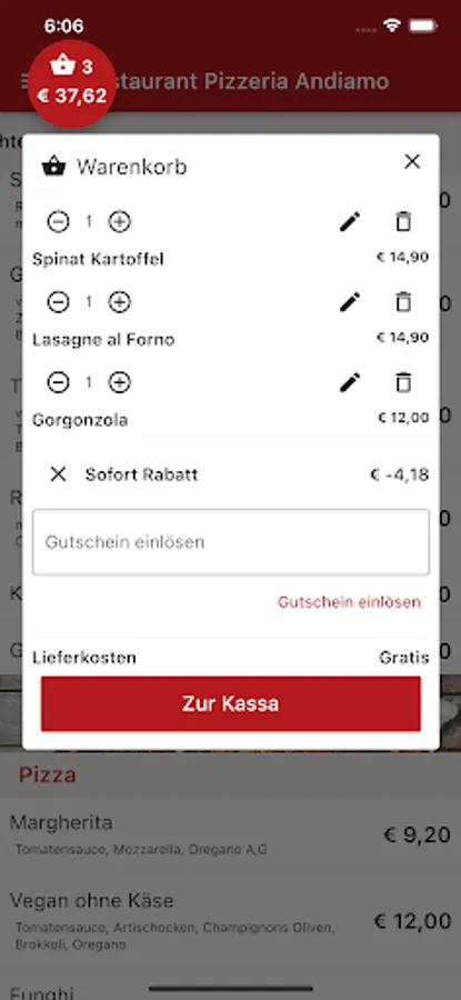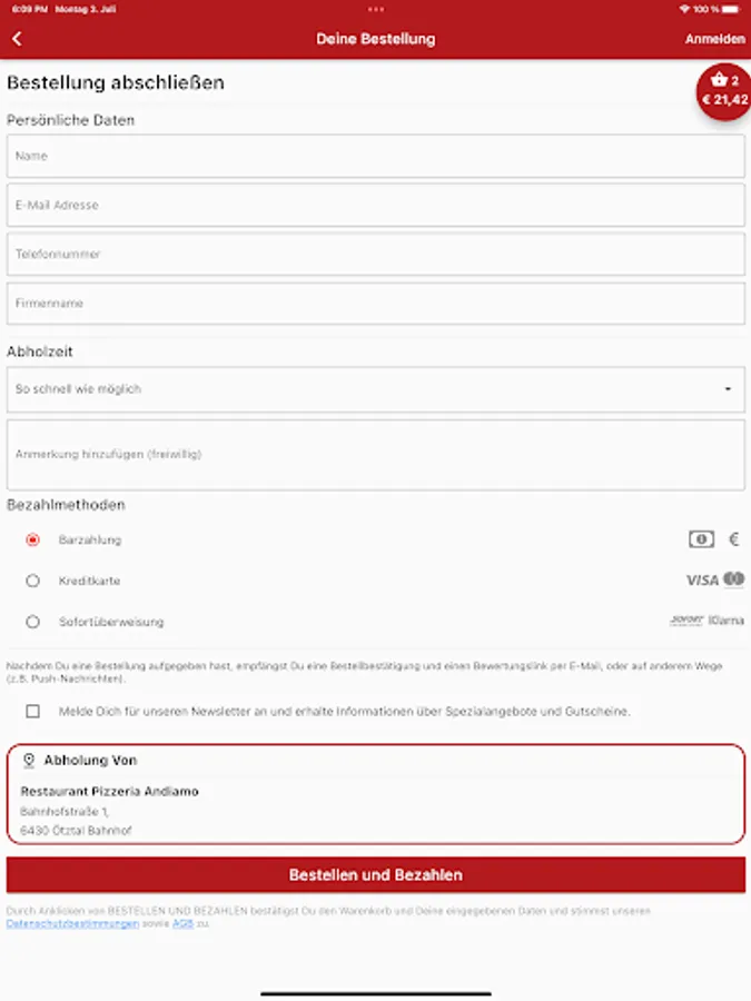 Pizzeria Andiamo Ötztal Bahnhof now also delivers to your home. Order Italian pizza, pasta, salads, drinks and desserts conveniently and easily online. Now simply order food online via web or app. Choose your favorite food, pay easily & securely and the food will be delivered! Simply order food and have it delivered for free! Pay cash or online. Great offers. Excellent service. Fast delivery.