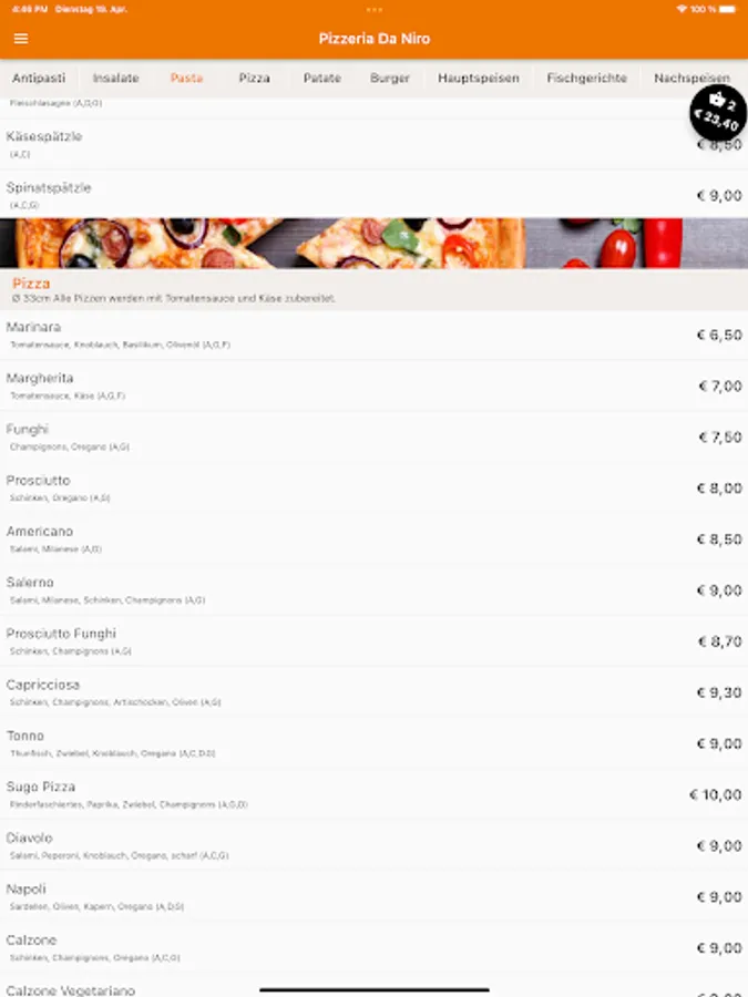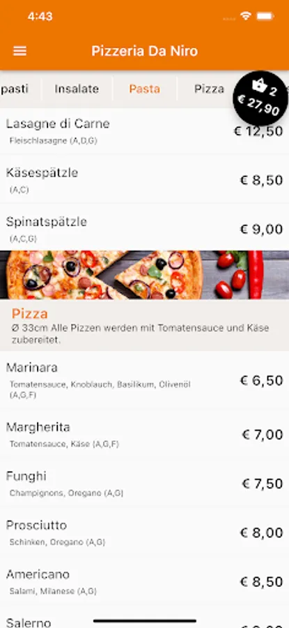 Pizzeria Da Niro Innsbruck now also delivers to your home. Order Italian pizza, pasta, burgers, fish dishes, salads, drinks and desserts conveniently and easily online. Order food online now via web or app. Choose your favorite food, pay easily & securely and your food will be delivered free of charge. You can pay in cash or online. We also offer great deals with excellent service and fast delivery.