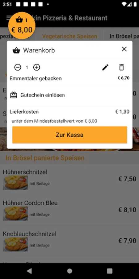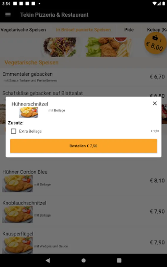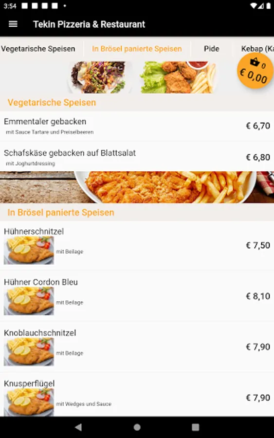 Tekin Pizzeria Restaurant now also delivers to your home. Order Italian pizza, kebab, salads, drinks and desserts conveniently and easily online. Now simply order food online via the web or via the app. Choose your favorite food, pay easily & securely and food will be delivered! Simply order food and have it delivered for free! Pay in cash or online. Great offers. Excellent service. Fast delivery.