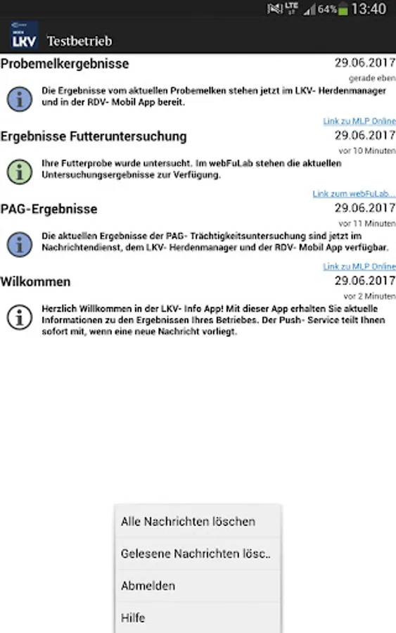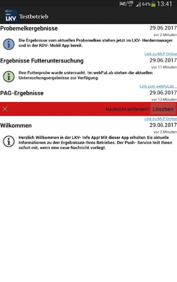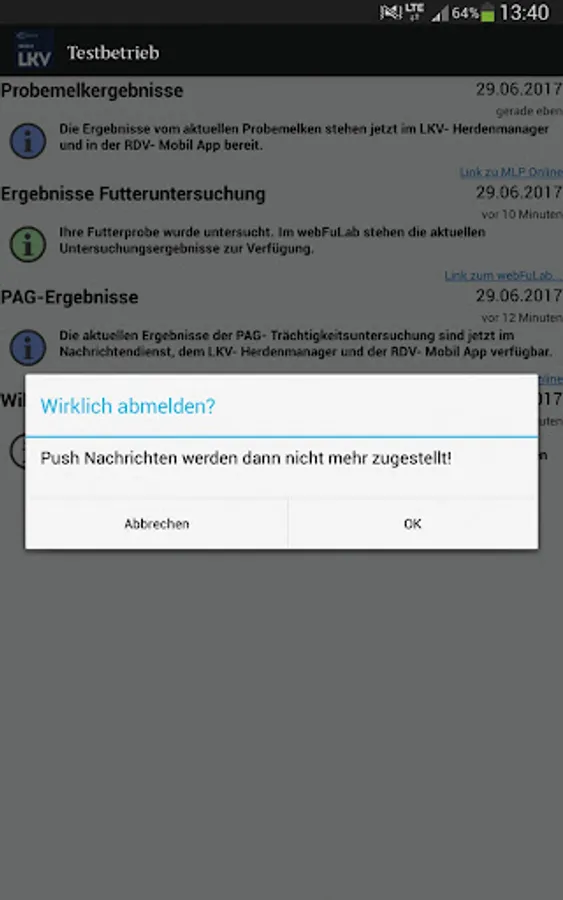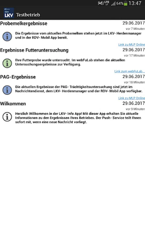 For example, you get a brief information as soon as your current MLP results in AFR herd managers or RDV mobile app are available. The availability of current PAG Trächtigkeitsuntersuchungsergebnisse and feed findings will inform you in the same way immediately.
