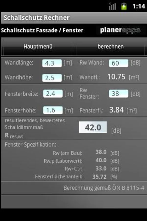 The soundproofing computer is equipped with the functions sound insulation façade / windows, RW solid components and resonance frequency, further useful functions will follow with the next updates.