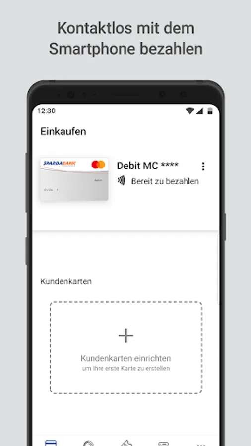 Install the SPARDApay app and activate your digital debit card in just a few steps. You can pay easily and contactlessly with your smartphone on the go and leave your debit card at home. Hold your smartphone near an NFC-enabled payment terminal and pay amounts up to 50 euros without entering a PIN. For larger amounts, please enter your PIN at the POS payment terminal - as with your plastic card.