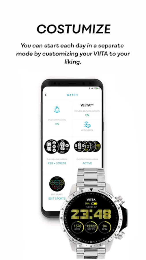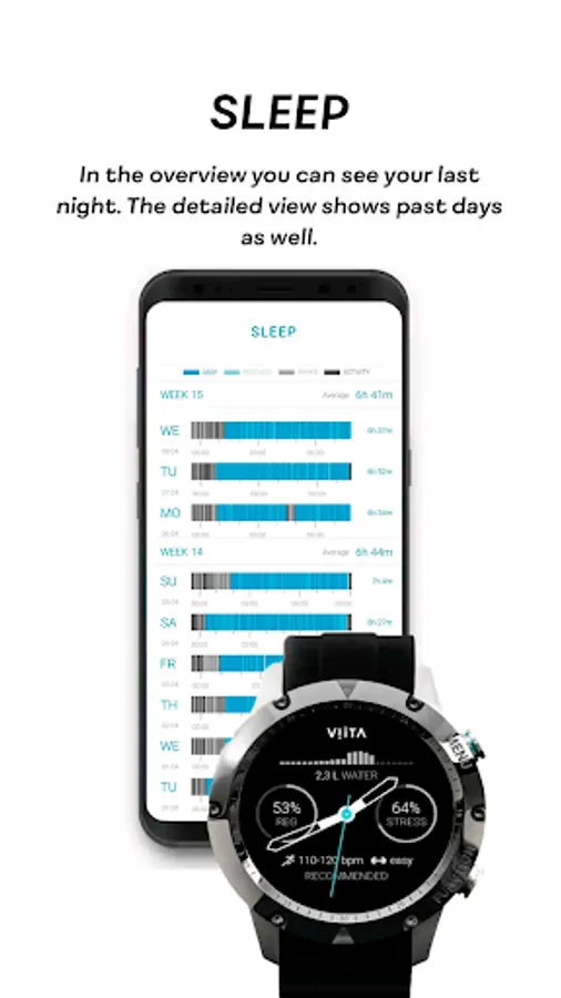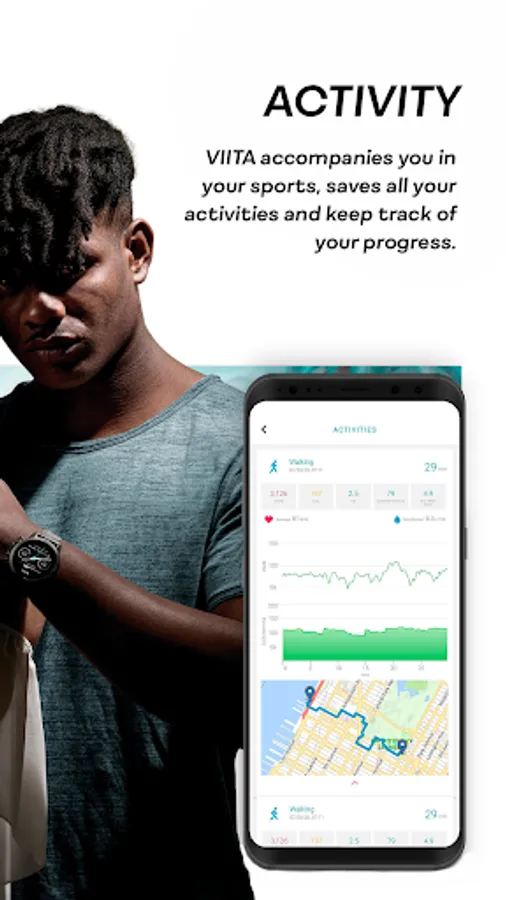 Your VIITA lets you track activities (speed, distance, time, heart rate and calories) for more than 20 sports.
