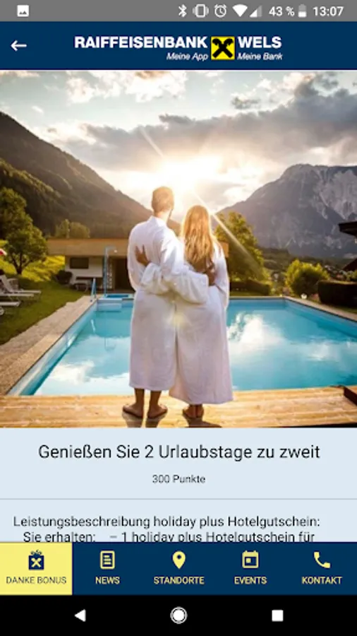 Bonus program for all customers of RAIFFEISENBANK WELS. The more you work with us, so also higher your score. Replace bonus points into experiences.