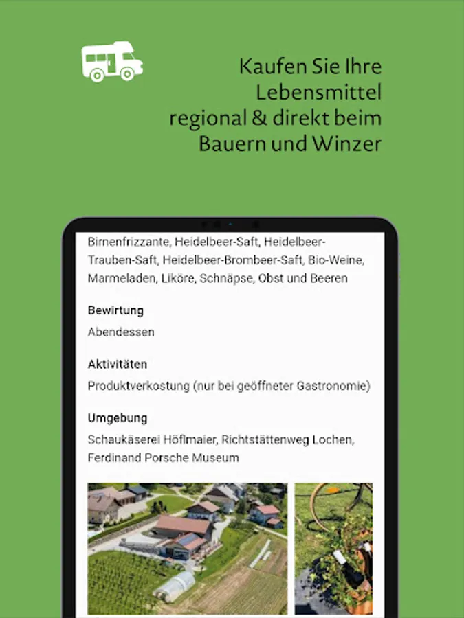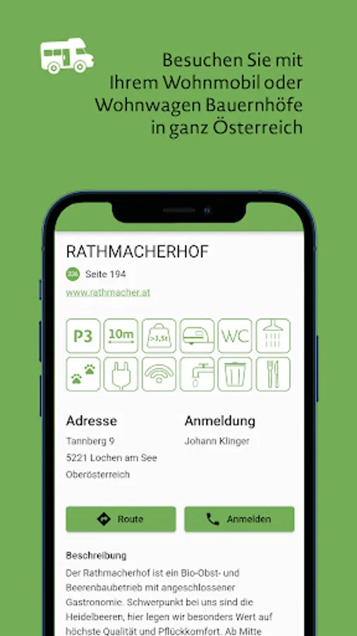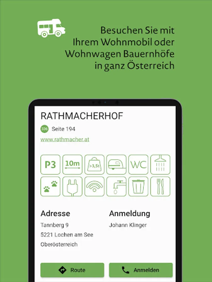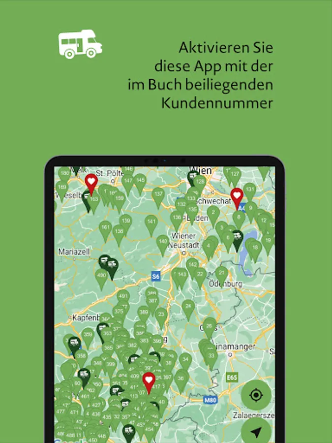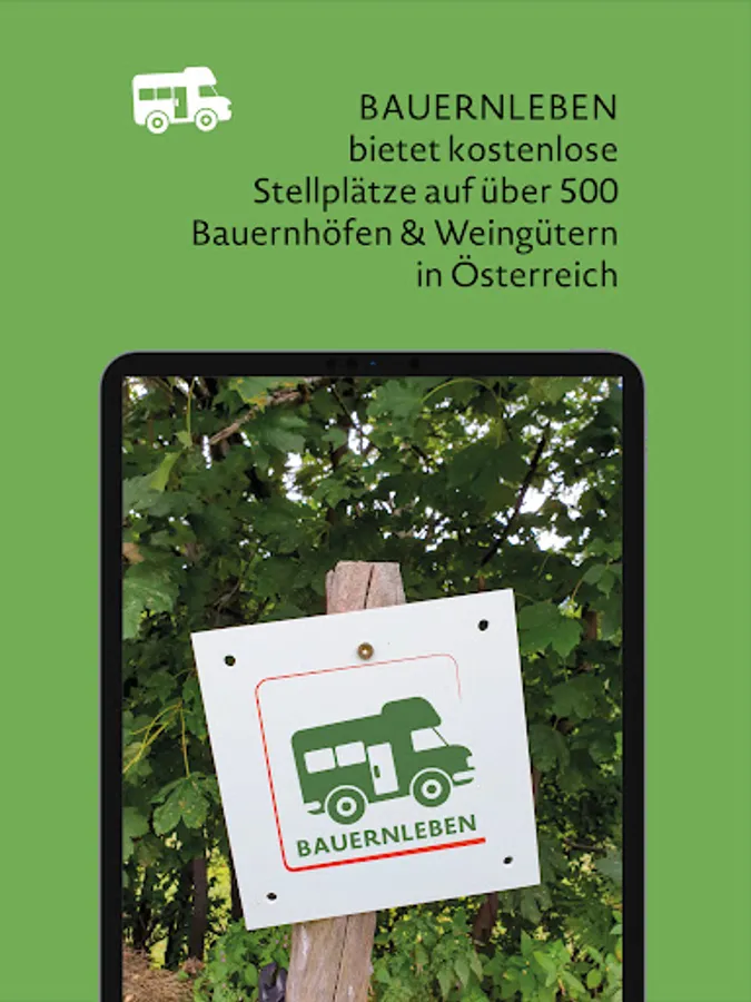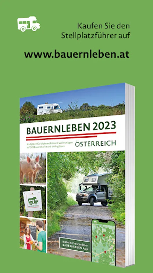 The Bauernleben app is an additional, free service for the Bauernleben parking space guide. The app functions can only be used with a valid customer number. This customer number is enclosed with the book.