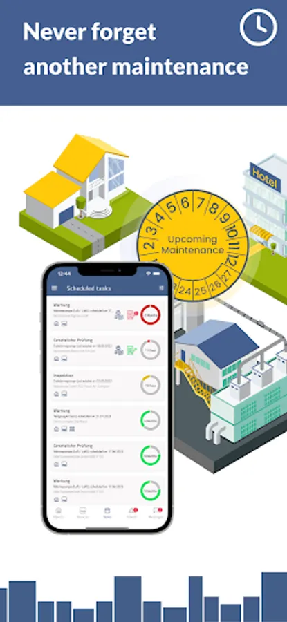 MyBuilding24 not only helps you to never miss a maintenance date again, but also prevents tightly coupling maintenance expertise to individual employees. Our user friendly interface helps you determine which of your facility managers is responsible for which maintenance appointment with which service contractor.