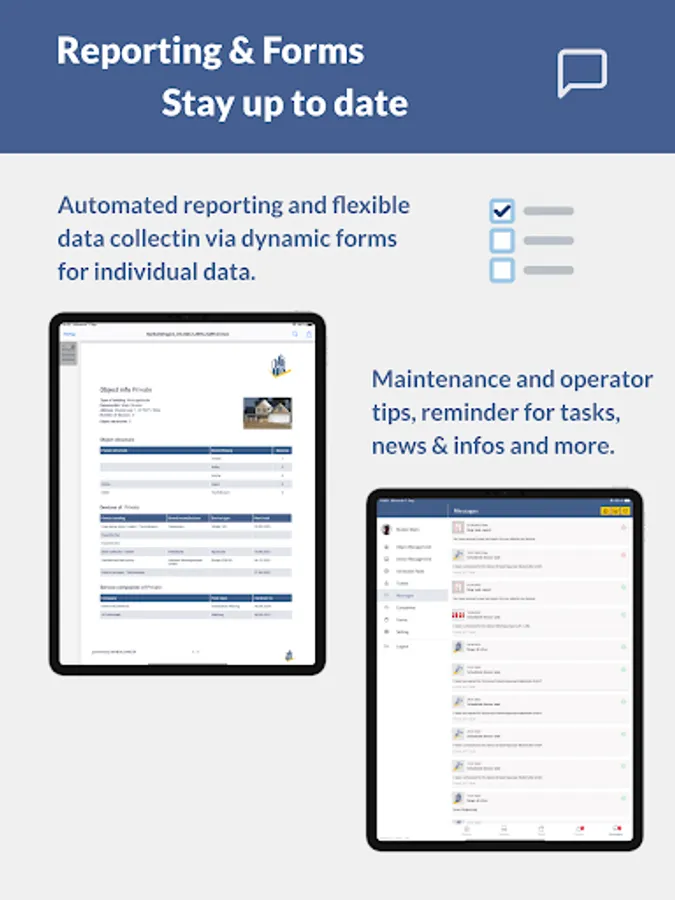 • Location overview: no matter how many different buildings you manage. MyBuilding24 comprises all data! Organize your devices per respective building.