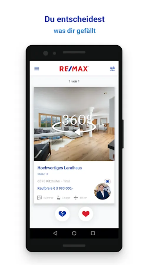 Be first. See more. Find your desired property quickly and easily with RE / MAX and experience numerous apartments, houses and properties in a new way. Convince yourself: Virtual Reality and the perfect implementation make the presentation of real estate a new experience for you.