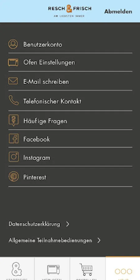 Resch & Frisch Social Media: Under "More" you will find oven settings, frequently asked questions and our customer service as well as the Resch & Frisch Facebook and the Resch & Frisch Instagram account in the Resch & Frisch app and you can follow, like and comment with just one click.