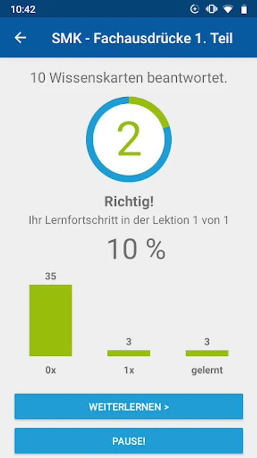 The system recognizes what you already know and what you should repeat. The resolution is displayed immediately, in part with an explanation, pictures or other information. The flashcards contain so little text that it is fun to use them in between - on the go, during the break or in the outdoor pool.