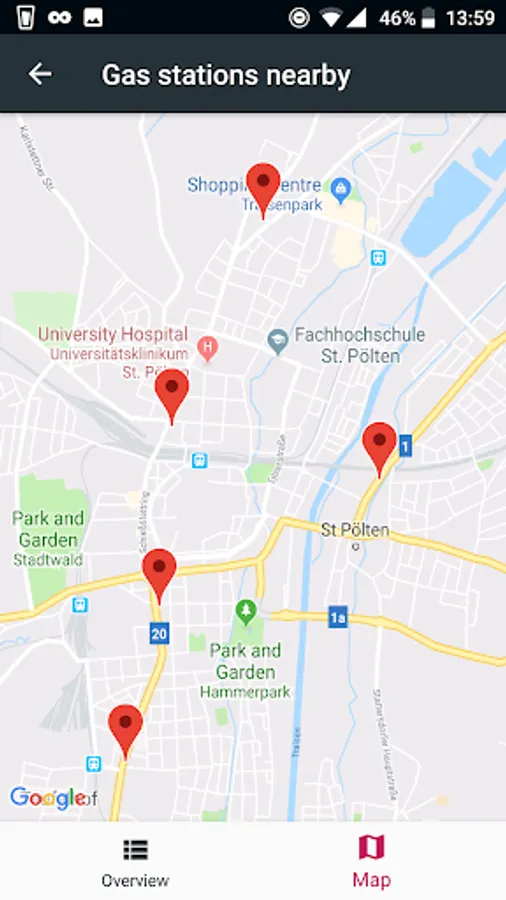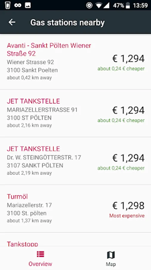■ Map display of all found gas stations incl. Navigation option