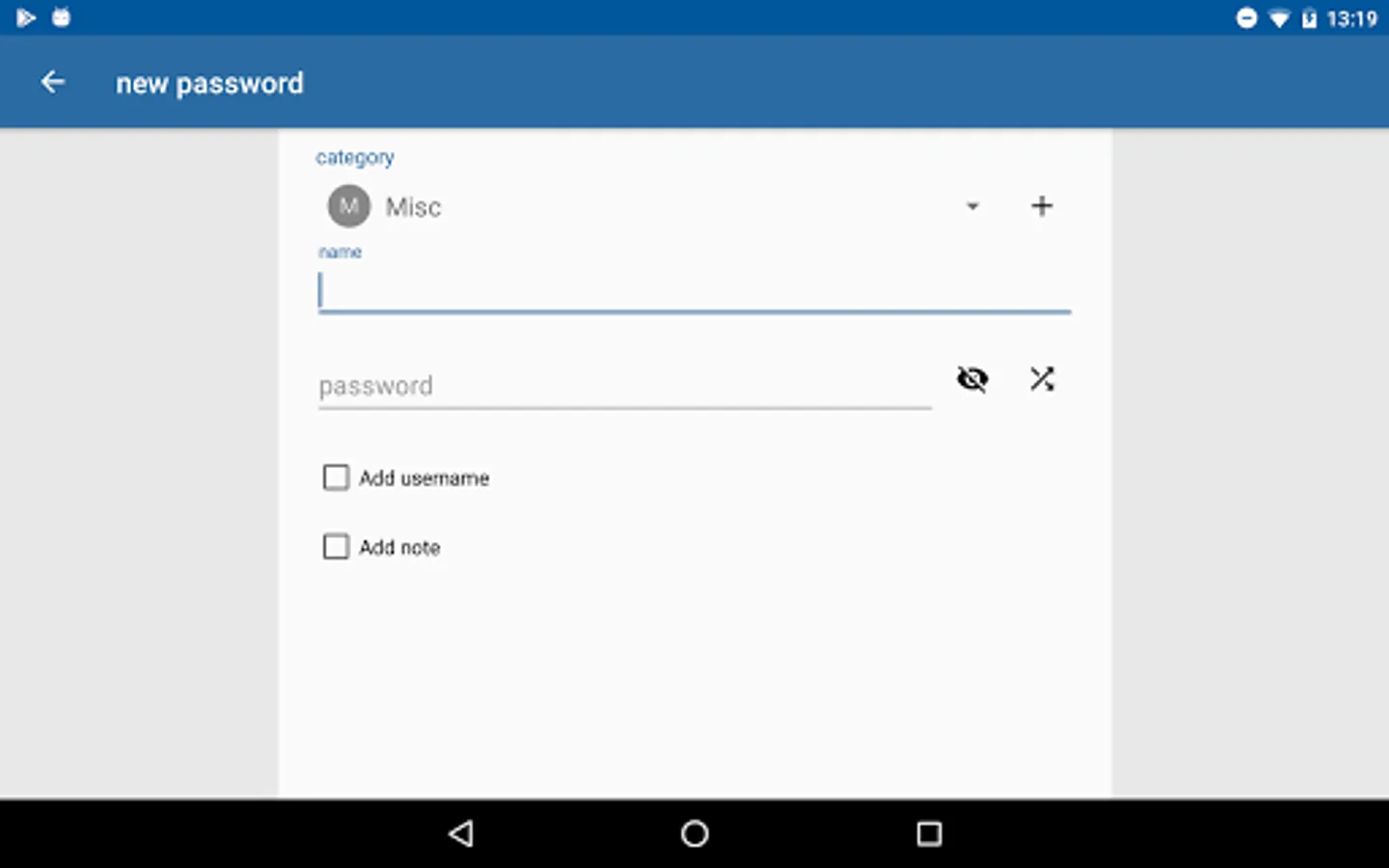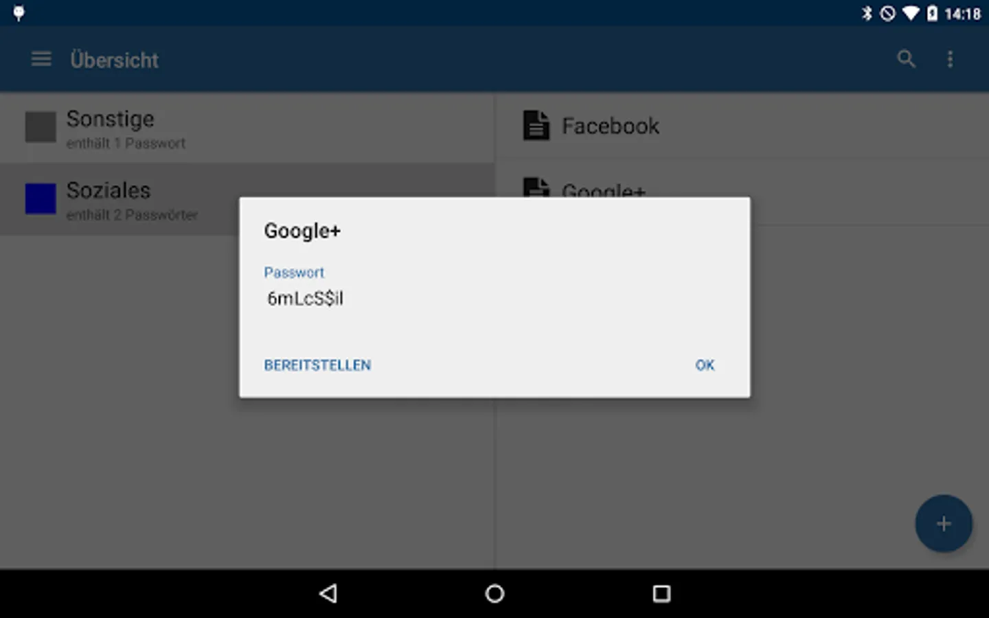 3. Add your passwords by pressing the green '+' symbol.