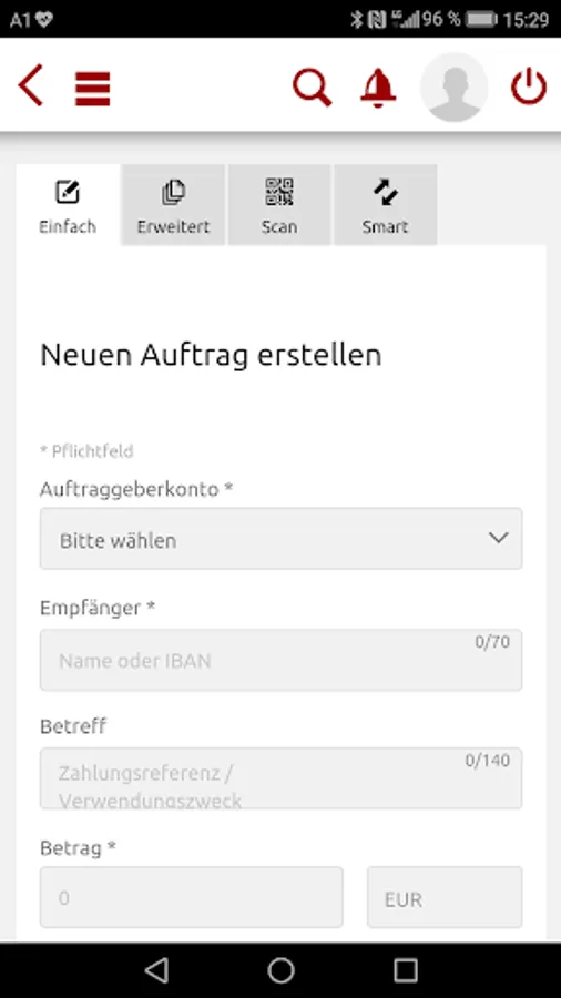 • Transfer quickly and easily via QR code scanning: The customer can use already used and stored recipient data for a smart order entry or save entering the invoice details using the QR code scanning function.