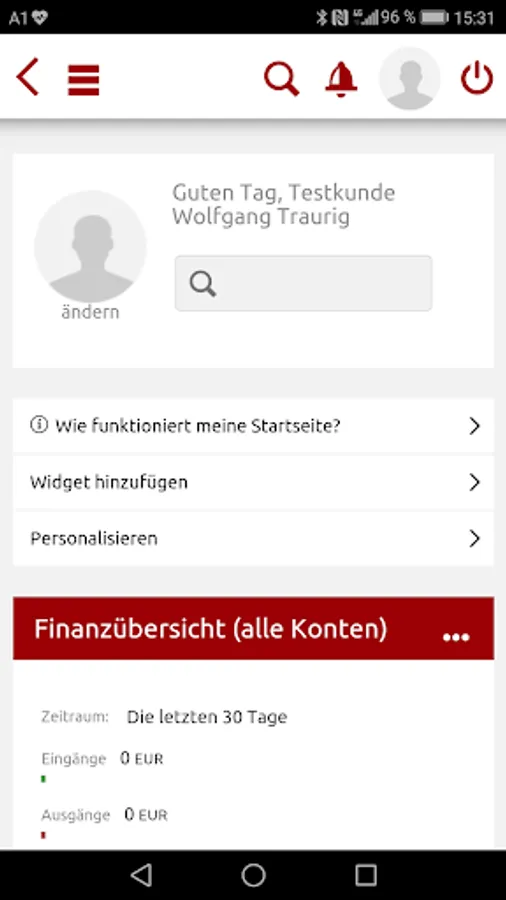 • The finances at a glance: current accounts, savings accounts and so on with a single click. In the financial overview of the current financial status is displayed and the customer has access to all its current accounts, savings accounts and credit cards. is complemented by an overview graphic waveform diagrams in assets and revenues.