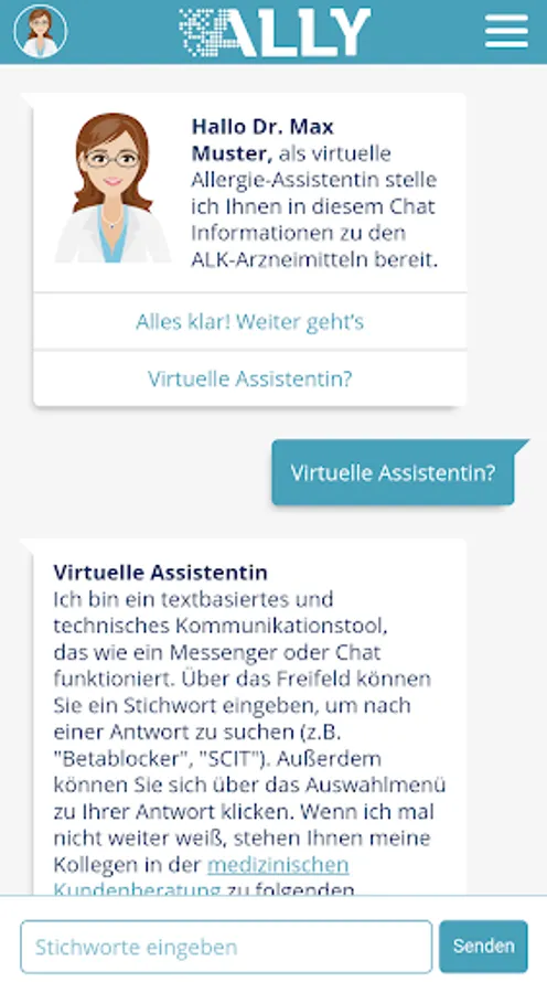 - Virtual assistant for allergists: Chatbot Ally answers your questions about ALK medicines in the chat