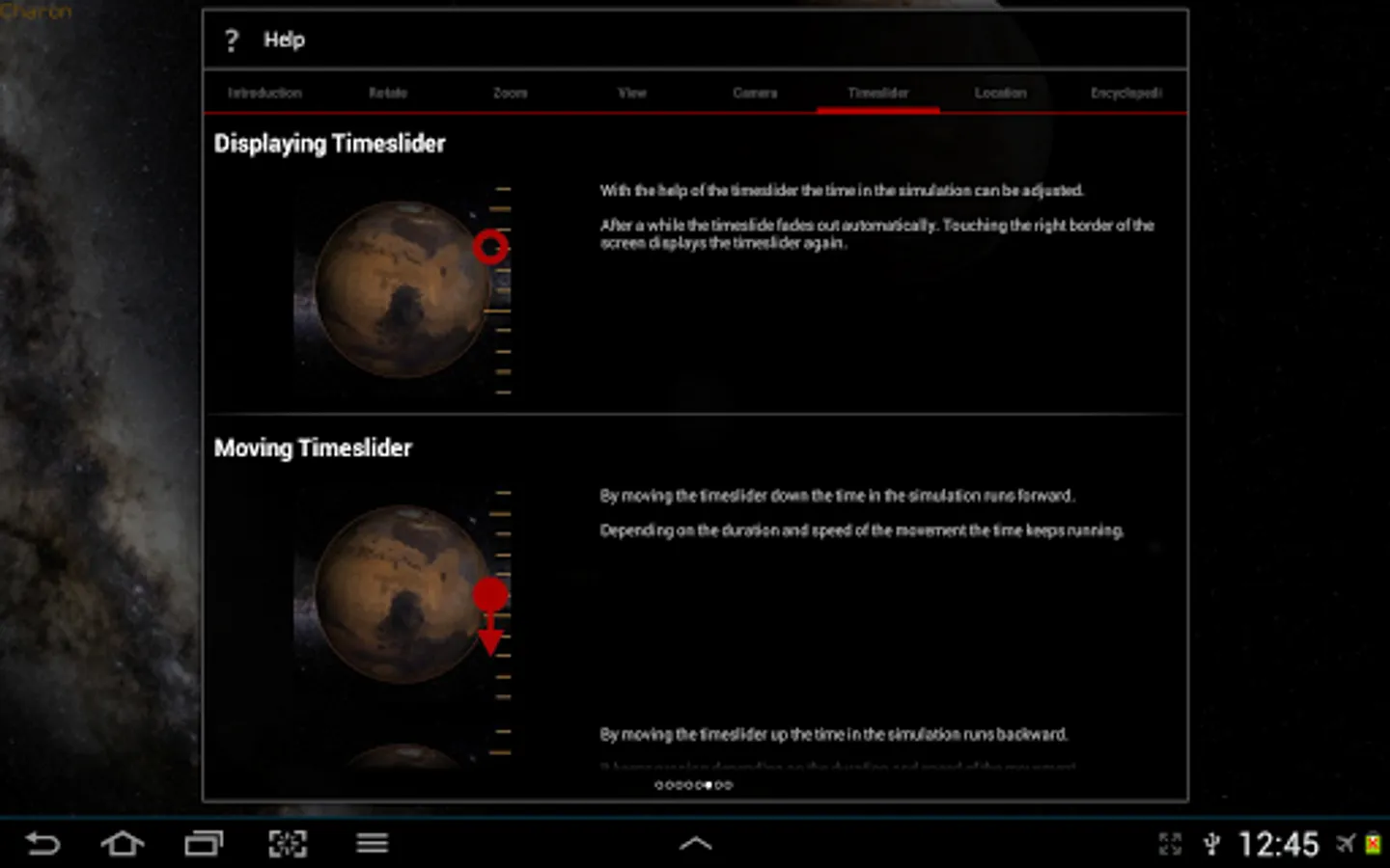 Bring the cosmos to life with an innovative timeslider. Let time take its course, how fast depends on the scale factor of the timeslider. A wipe with your finger and the simulator comes to life.
