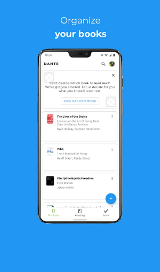 Dante lets you manage all your books by simply scanning the ISBN barcode of the book. It will automatically grab all information from Google's book database. The app lets you arrange your books into 3 different categories, whether you have read the book, are currently reading the book, or saved the book for later. So you can simply keep track of your progress of all your books and their current states.