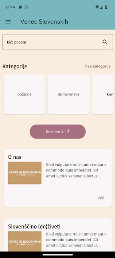 Easily search for Slovenian songs by their title or lyrics. The songs are categorized by subject matter to make it even easier to find specific songs.