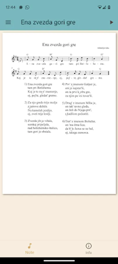 All songs in the Venec slovenskih songbook are written in a singable middle position, and the melody is accompanied by the lyrics of the first stanza. Chords are provided above the melody for possible instrumental accompaniment. The lyrics are listed below the scores but can be also viewed separately.