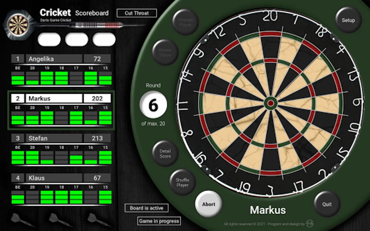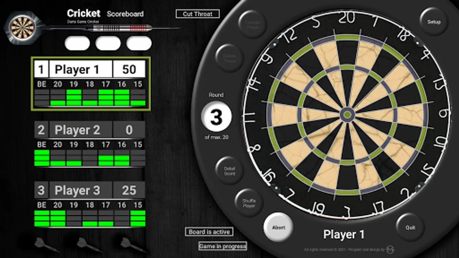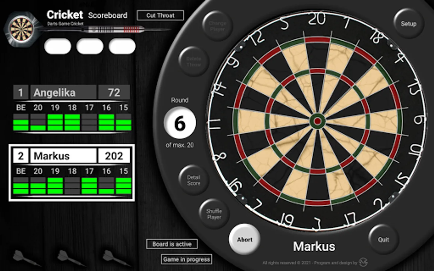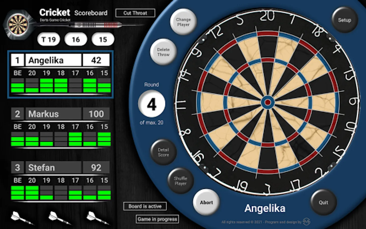 One of the most popular dart game “Cricket” has a new home with this counting app. Upgrade your dartboard to a powerful dart machine that support different game modes (game with “no points”, standard scoring and the very popular “cut throat” mode of counting) and provides various visual options (please take a look at attached pictures). It is supposed to be used by your tablet as well as smart phone with input pen as separate indication or to additionally mirror stream the display to your dart monitor located close to the dart board.