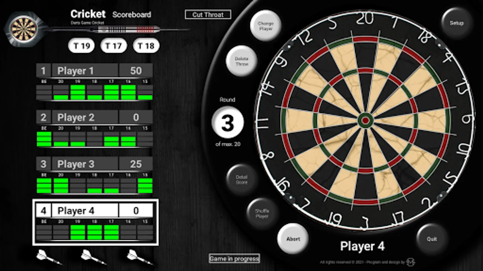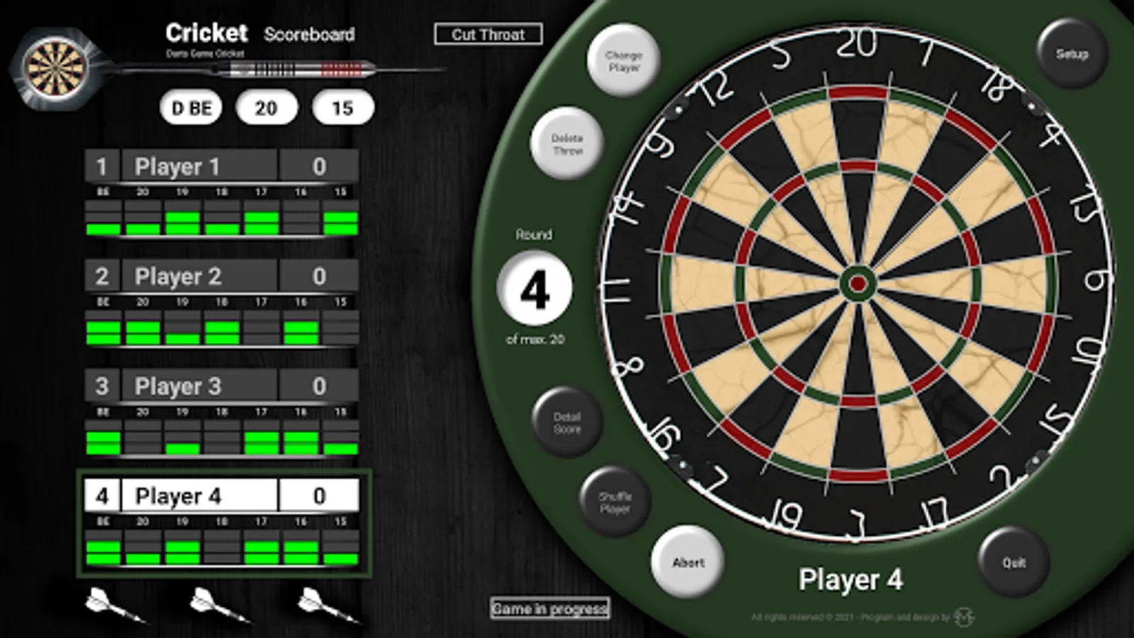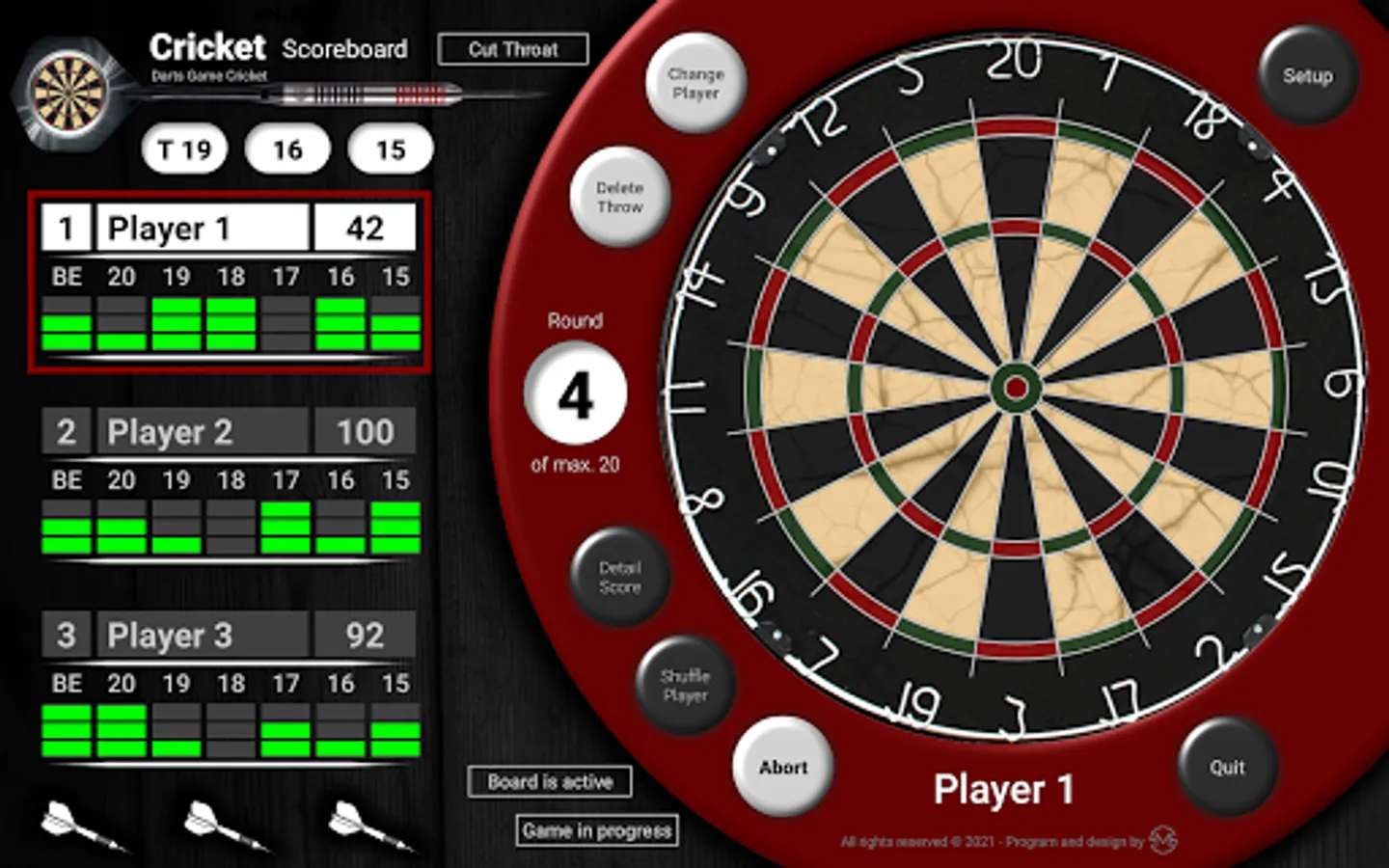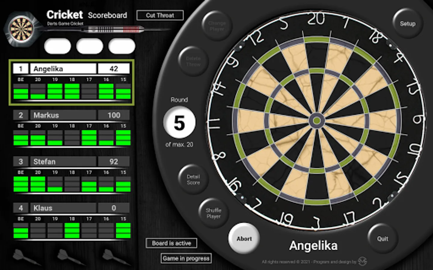 One of the most popular dart game “Cricket” has a new home with this counting app. Upgrade your dartboard to a powerful dart machine that support different game modes (game with “no points”, standard scoring and the very popular “cut throat” mode of counting) and provides various visual options (please take a look at attached pictures). It is supposed to be used by your tablet as well as smart phone with input pen as separate indication or to additionally mirror stream the display to your dart monitor located close to the dart board.