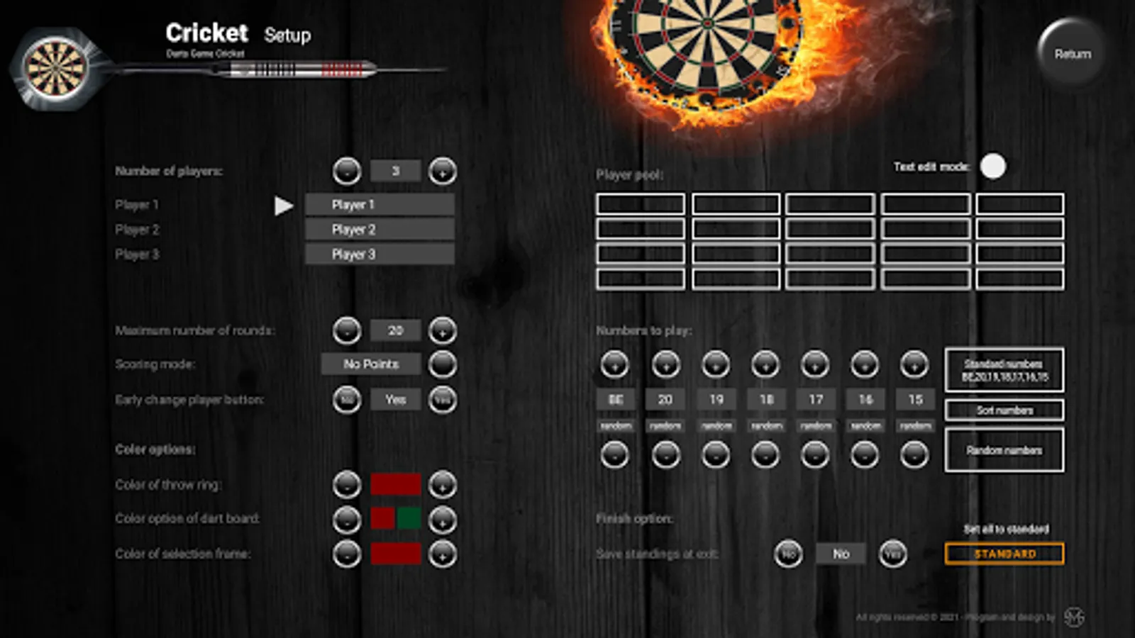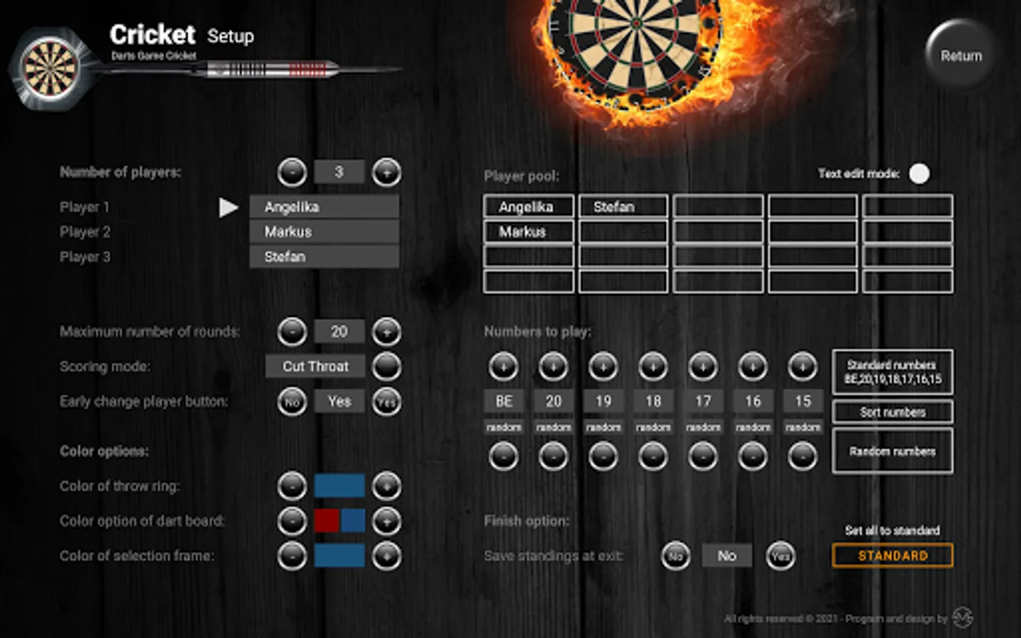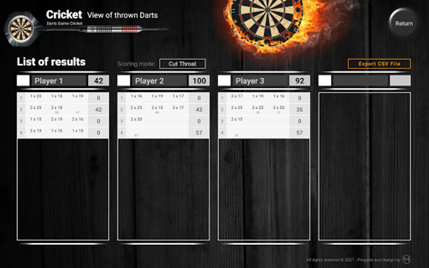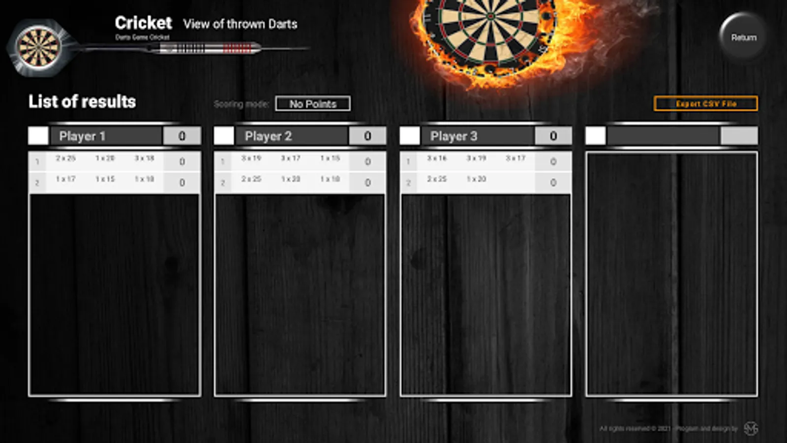 The counting app supports a maximum number of 4 players and provides the possibility to select your own numbers to be played or let the app generate random numbers for the purpose to keep up the fun level and challenge, if you what to enhance your skill and game. Furthermore, it provides the possibility to review the thrown darts shown on a summary table as well as it accommodates the option to export csv-files to evaluate your performance externally. Give it a try and have fun with your friends and family with this counting app and particular type of dart game.