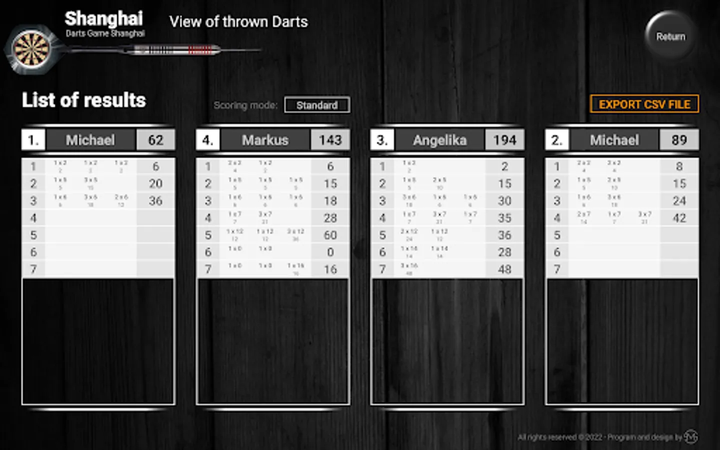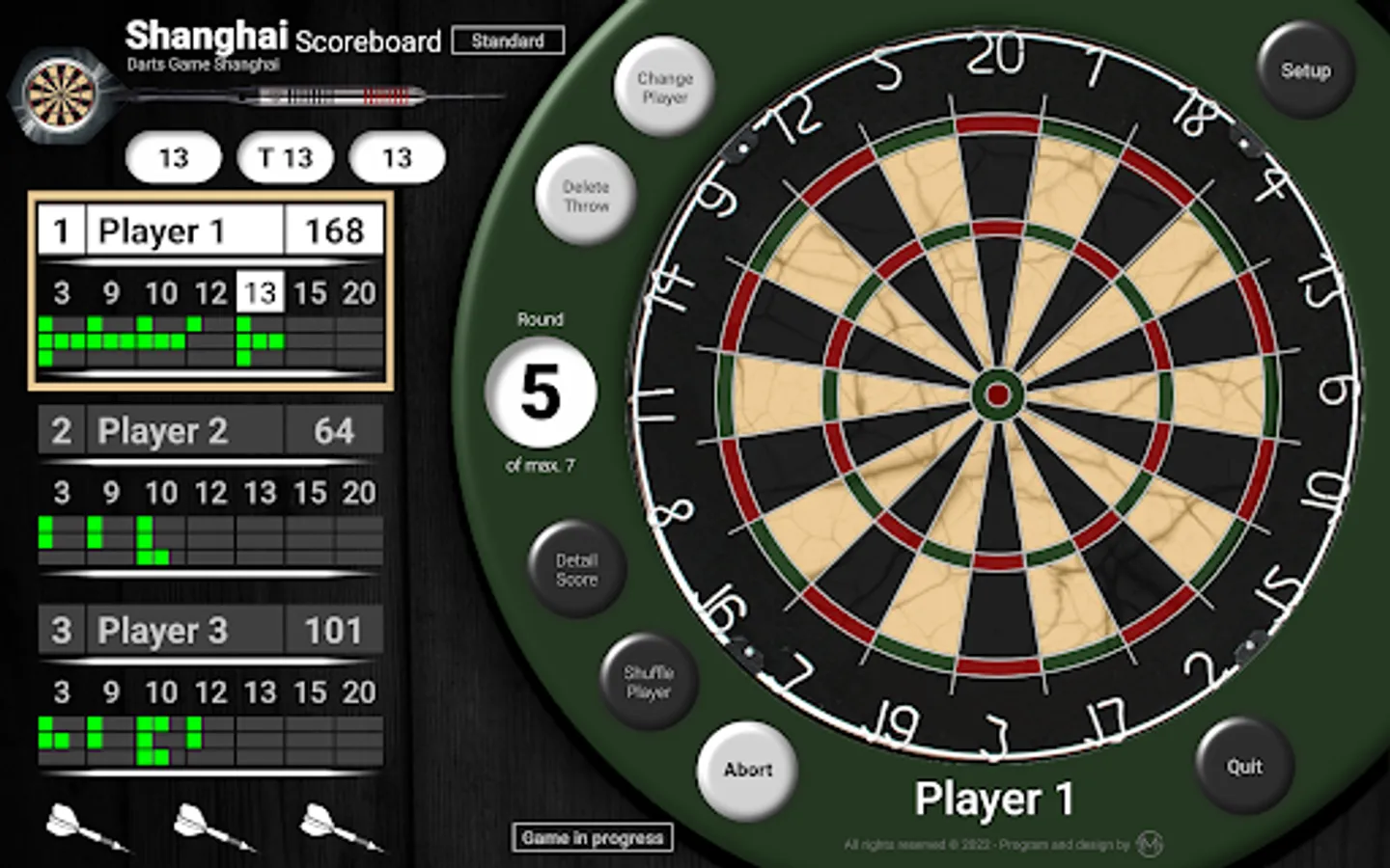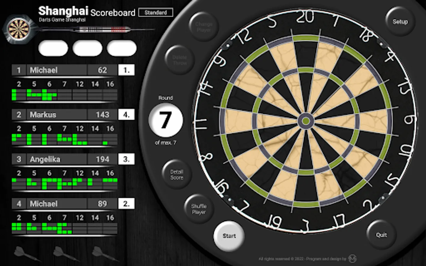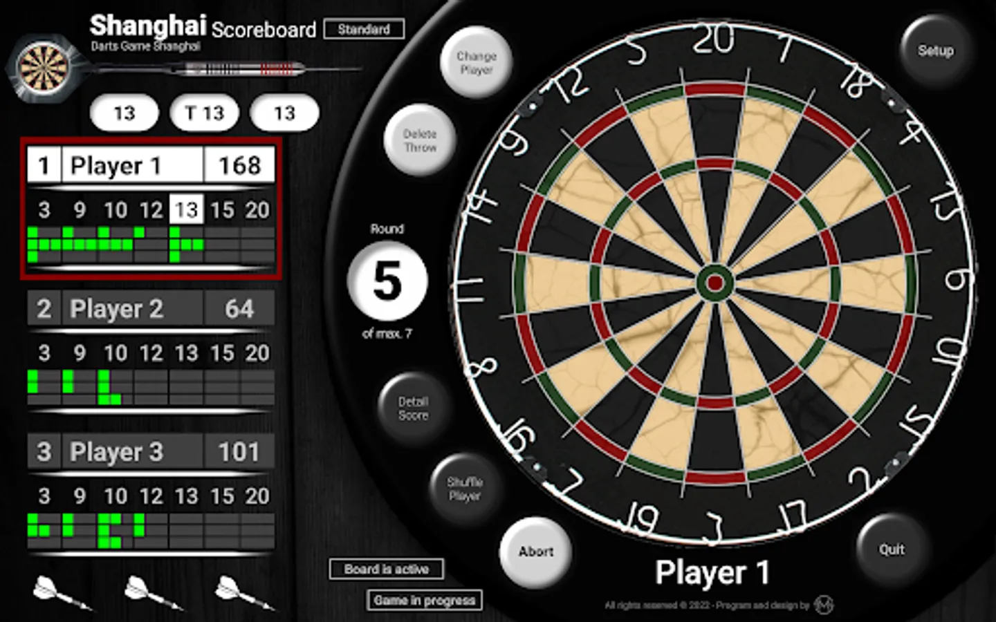 Remark: If you like this Darts Shanghai Counter, you might also like the Darts X01 Counter (301, 501, 701 & 901), Darts Cricket Counter or Darts Around The Clock Counter.