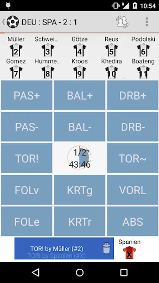 With Statastic Mundial you can record all the events around them as a key to analyze in statistics during a football game.