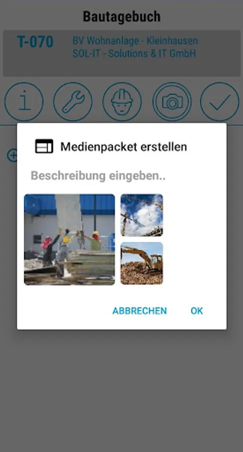 - Construction site documentation with photos and descriptive texts