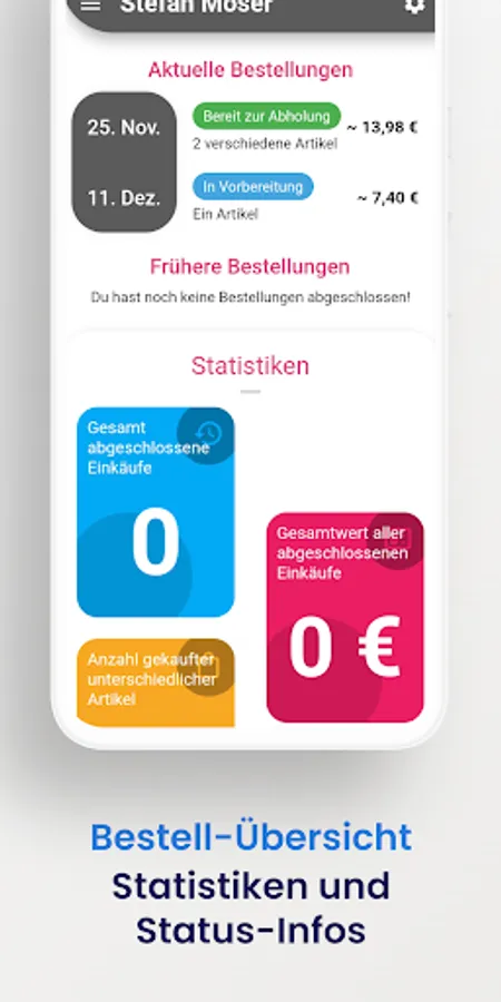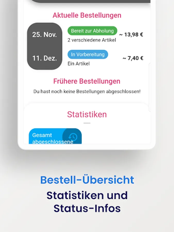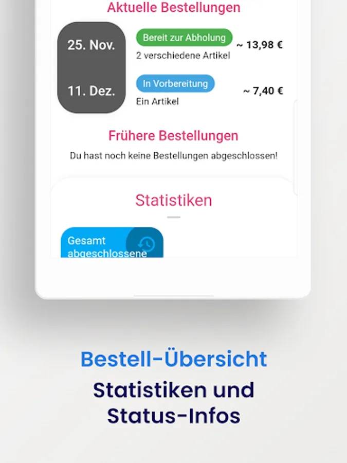 In the overview under "My orders" you can track whether your products are still being prepared or are already ready for collection. So that you don't forget your orders, we will send you a reminder via the app the day before.