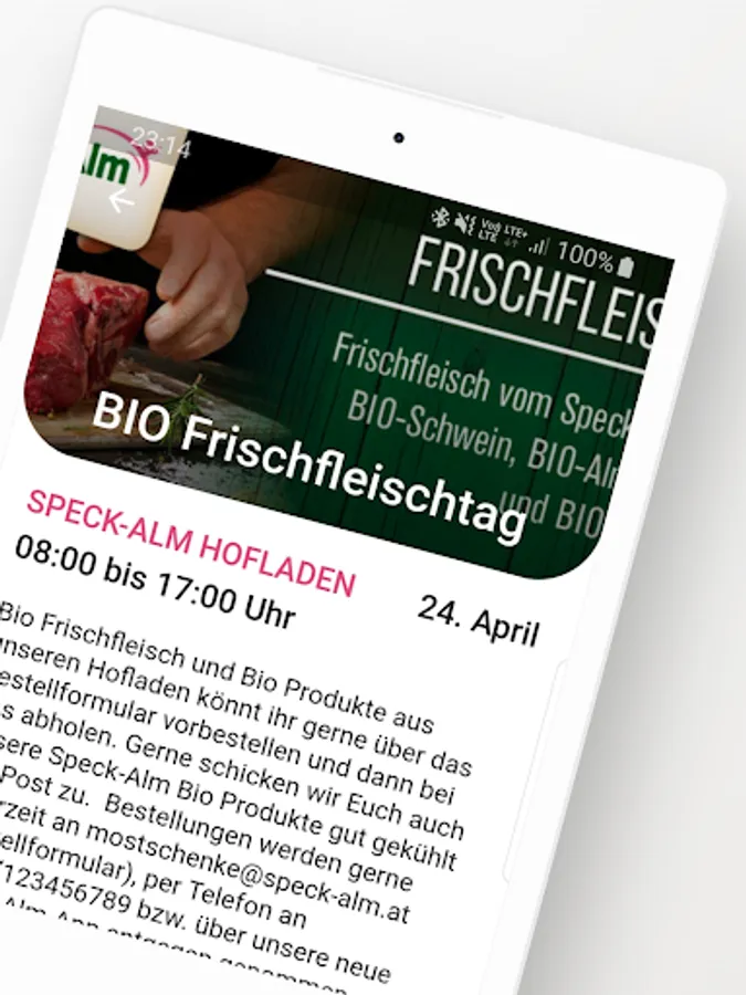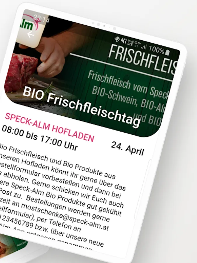 The ideal companion app for all Speck Alm friends is now available. With numerous functions, you are always up to date on news and events, and you can reserve tables or order products from us for collection in no time at all!