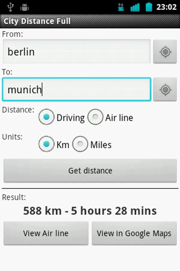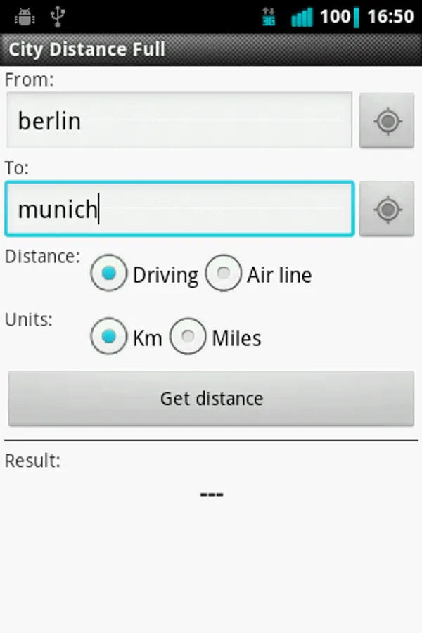 City Distance gives you the possbility to get the distance (Driving / air line in km / miles) between two places from all over the world.