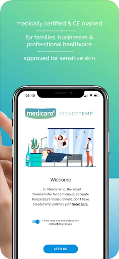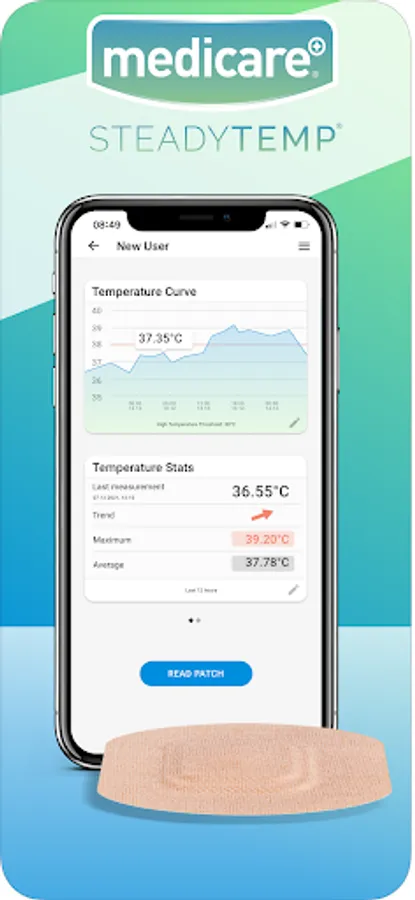 Medicare SteadyTemp is a smart thermometer used to alert you of changes in your body temperature by continuously measuring with the smart patch and app. This way you get a more complete picture when compared to a single measurement and identify fevers early. Wear the patch for up to 7 days and use your phone’s NFC (contactless) function to scan the patch twice a day.