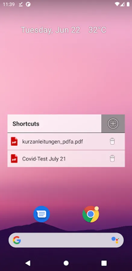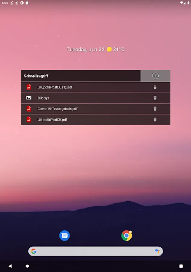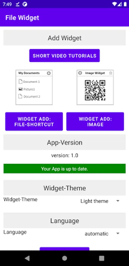 This app contains 2 homescreen widgets. You can share files and images directly to the homescreen of your device. So you can send important documents to the widget and access it directly within one click. Also you can send any image to the widget.