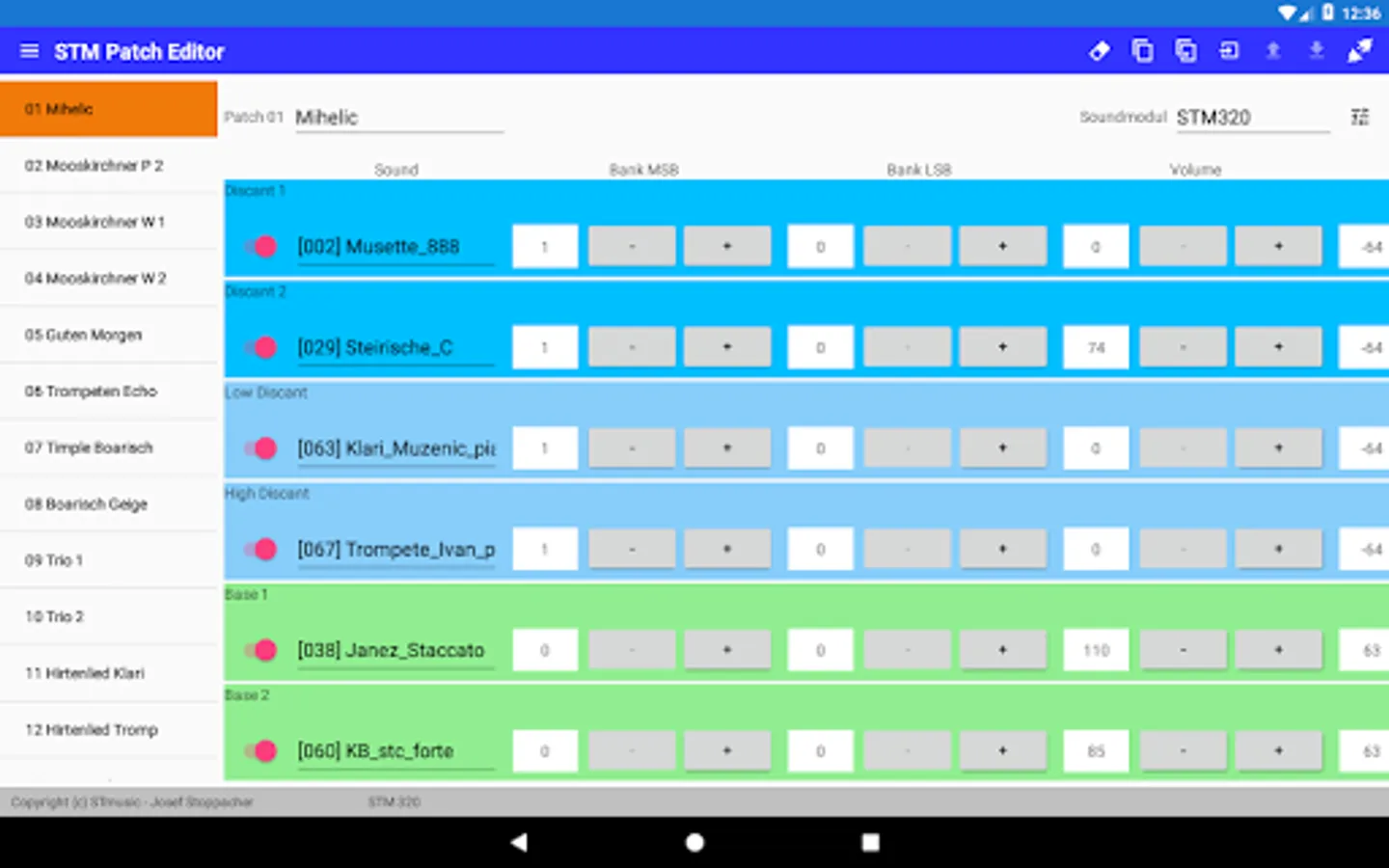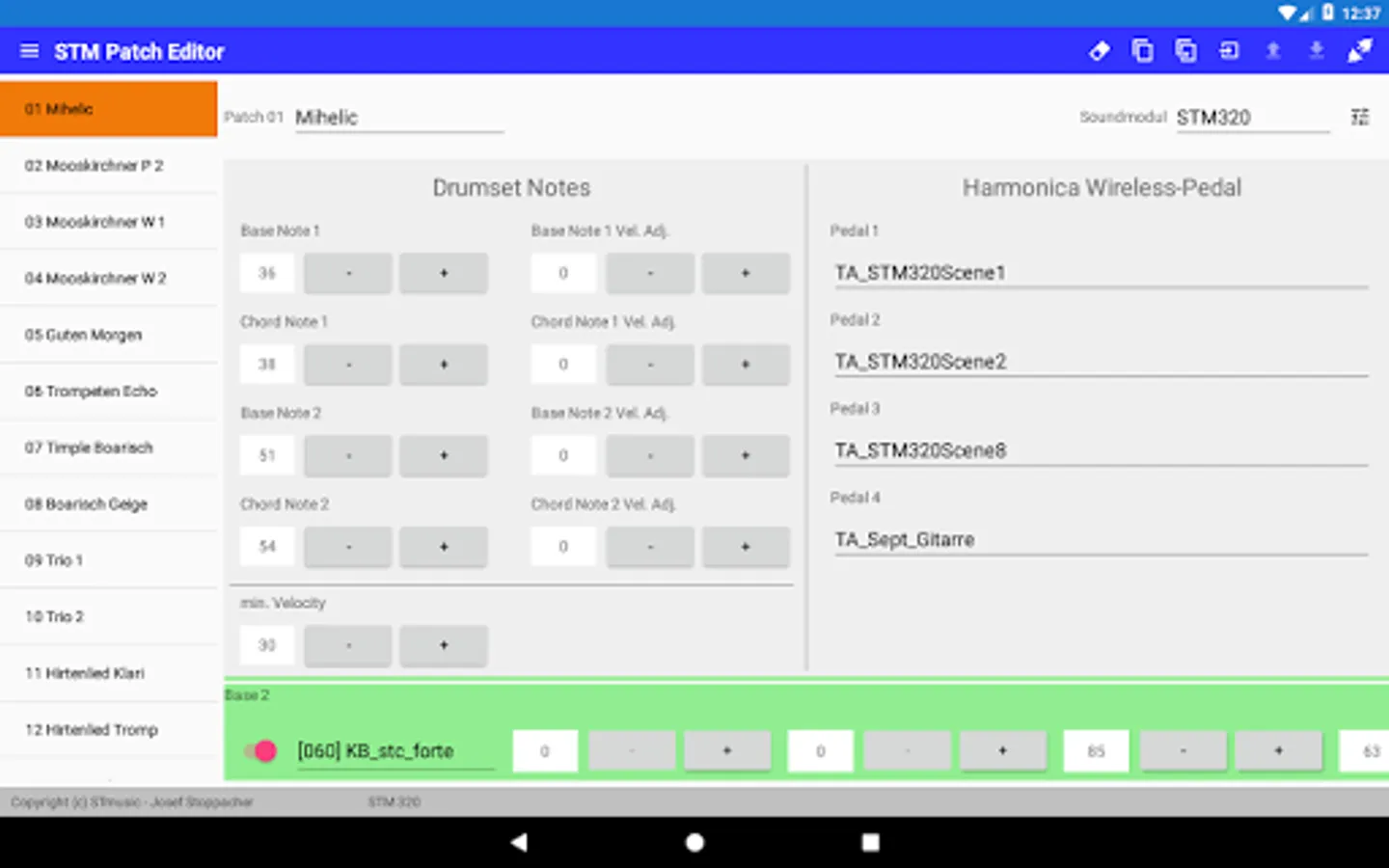 The patch editor can be used to configure the accordion and harmonicas MIDI system of STmusic.