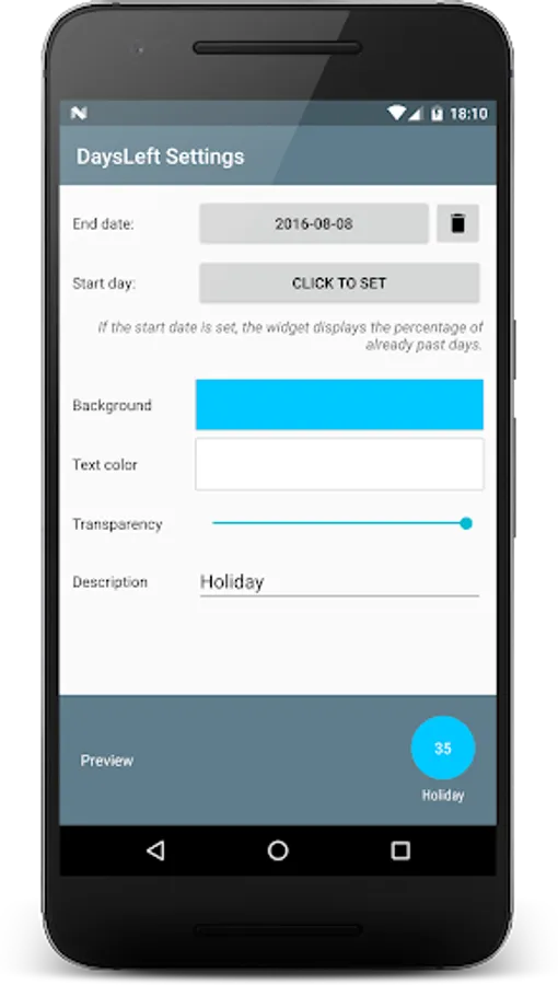 You can choose background color, text color, description as well as the transparency by tapping on the widget.