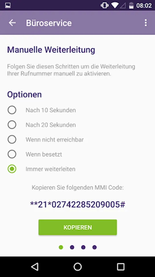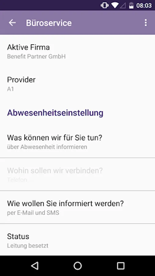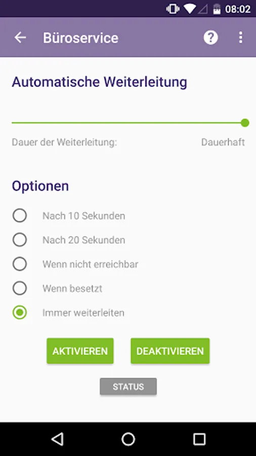 The secretarial services APP secretarial services customers can quickly and easily set up a call forwarding to your personal secretarial services secretary.